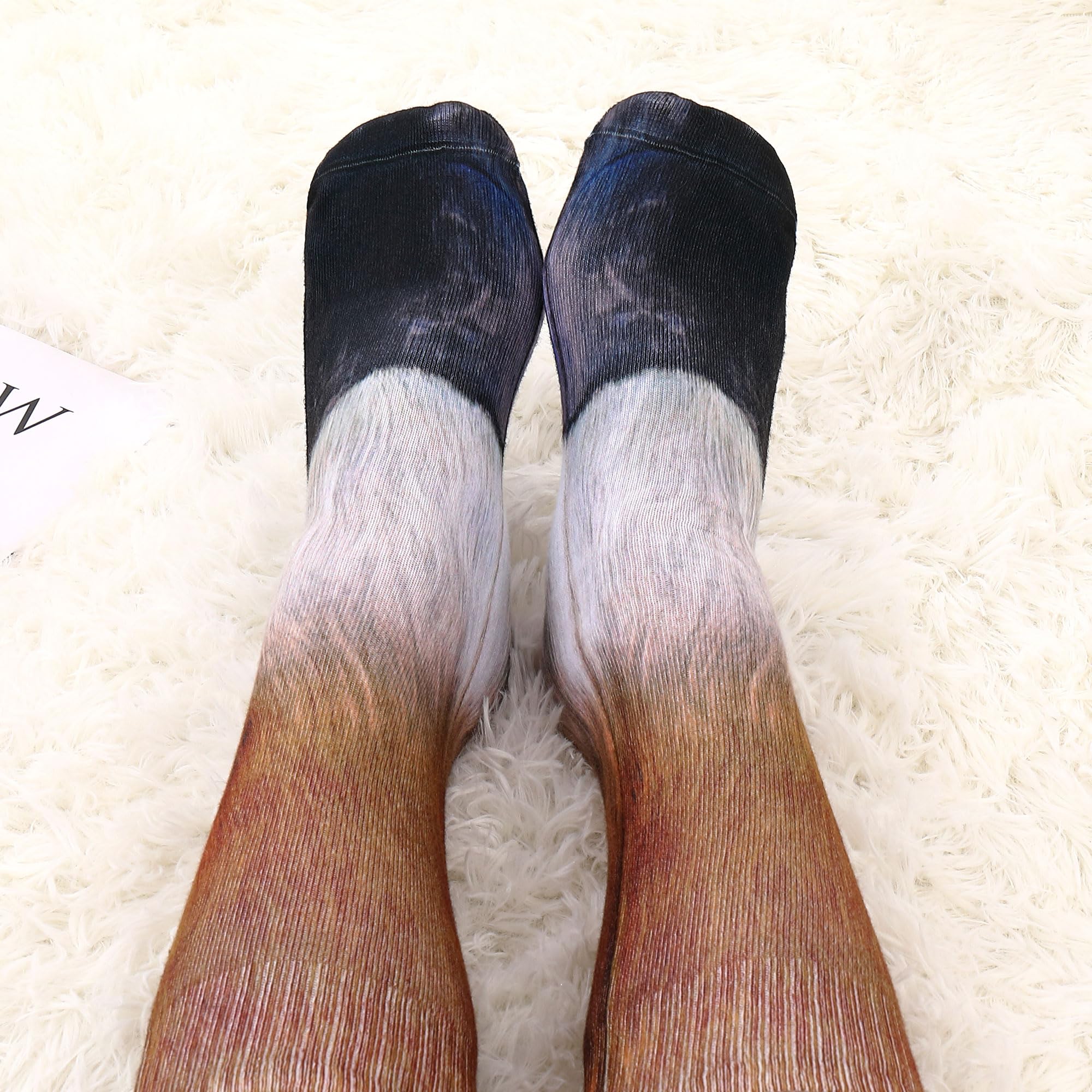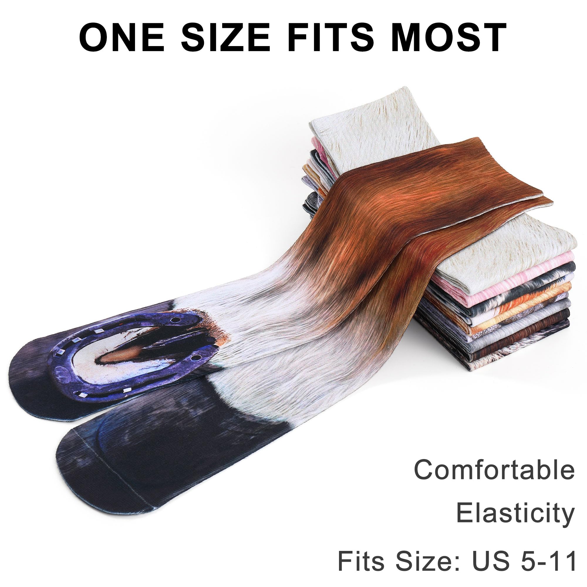Different pattern options-There are 10 different animals for you to choose, Cat, Dog, Elephant, Tiger, Horse, Eagle, Pig, Donkey, Zebra and Dinosaur.With the paw socks,TURN YOUR FEET INTO PAWS - Hilarious socks turn your feet into the paws of your favorite animal.Size:Around 33*9cm(13*3.6inch)