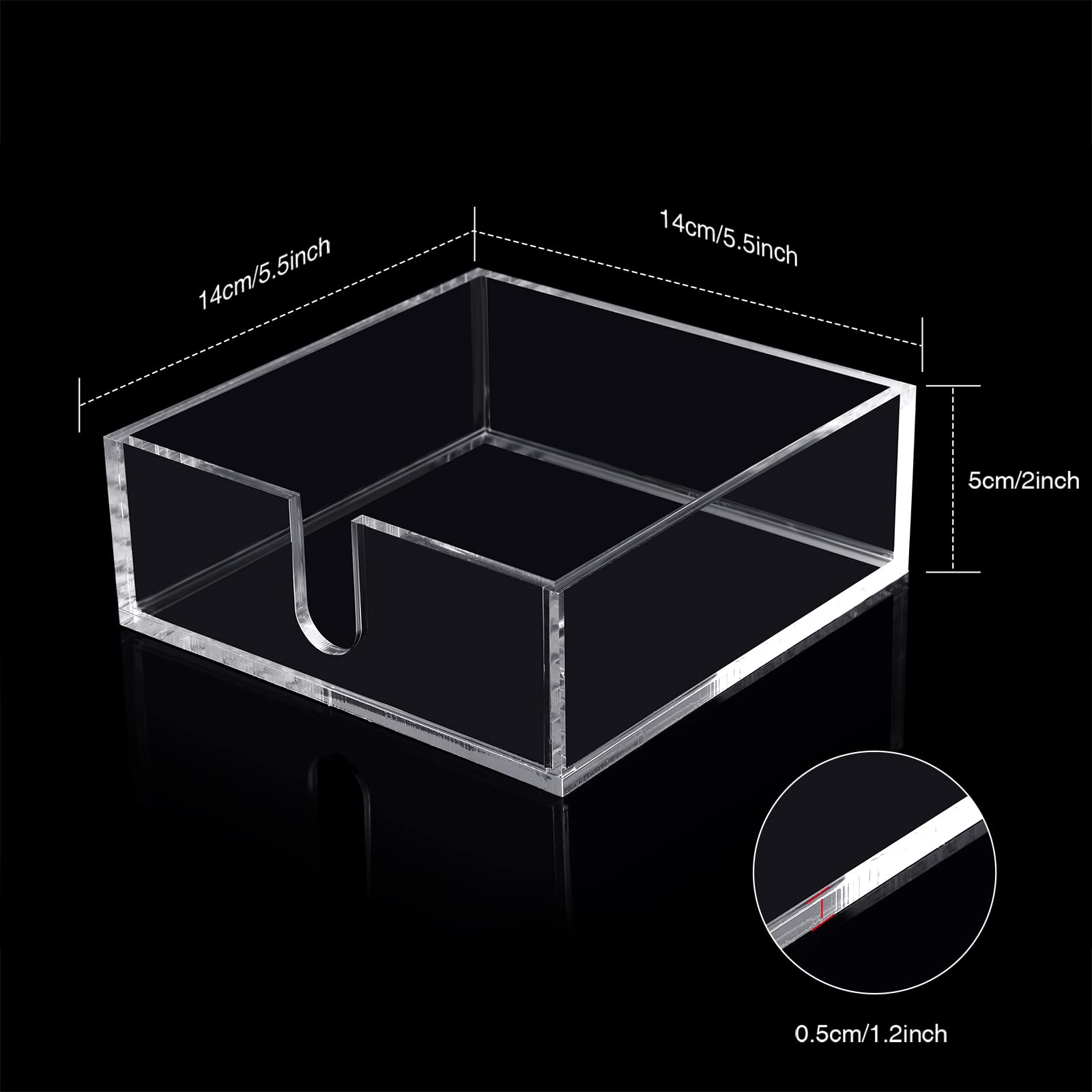 Size: the square acrylic napkin holder with an inner size of 5.5 x 5.5 x 2 inch is suitable for most 5 x 5 inch cocktail napkins; Warm tip: please confirm the napkin size before placing the order