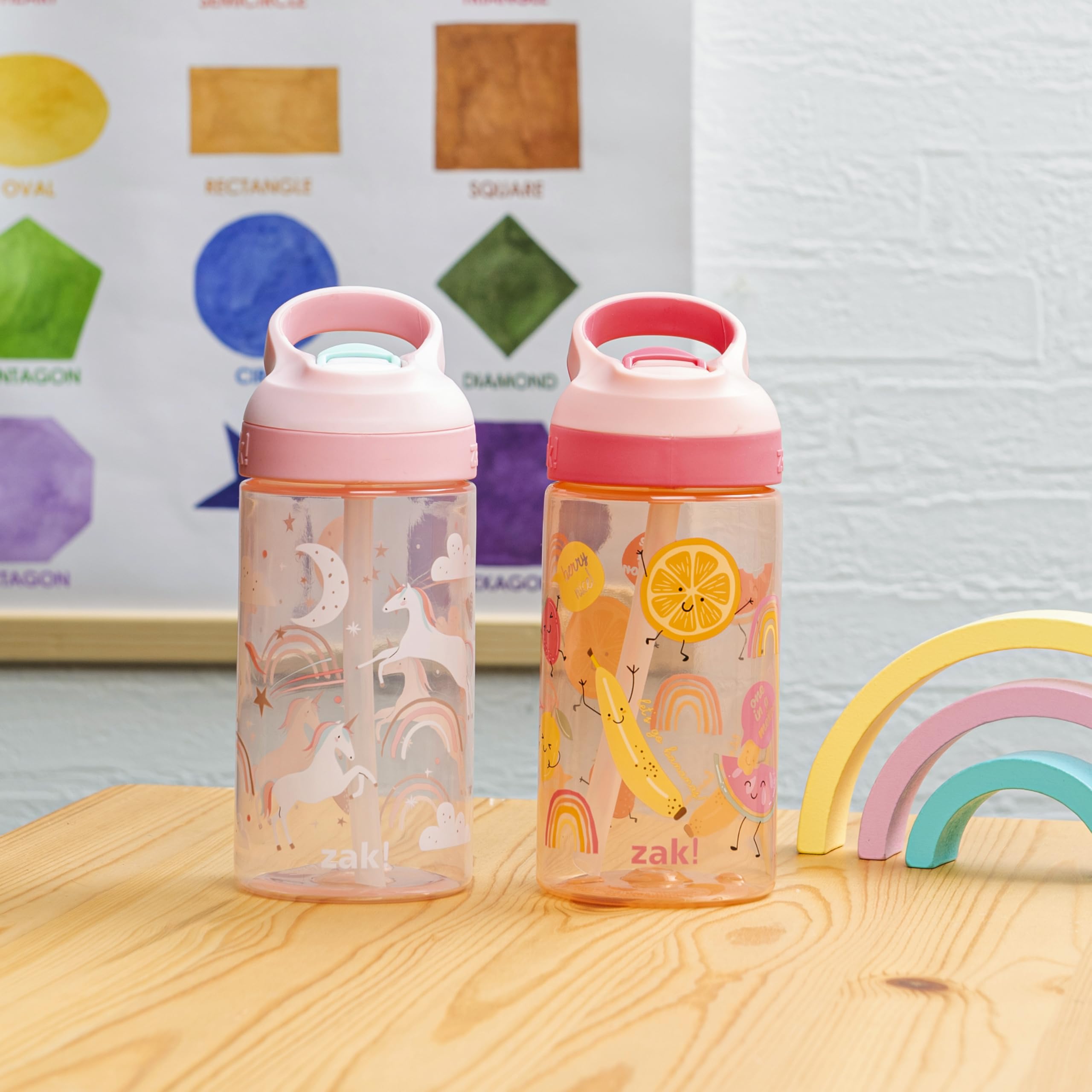 TWO UNIQUE DESIGNS: Each Zak Designs water bottle in this set has a different design that looks great and makes water fun to carry around.