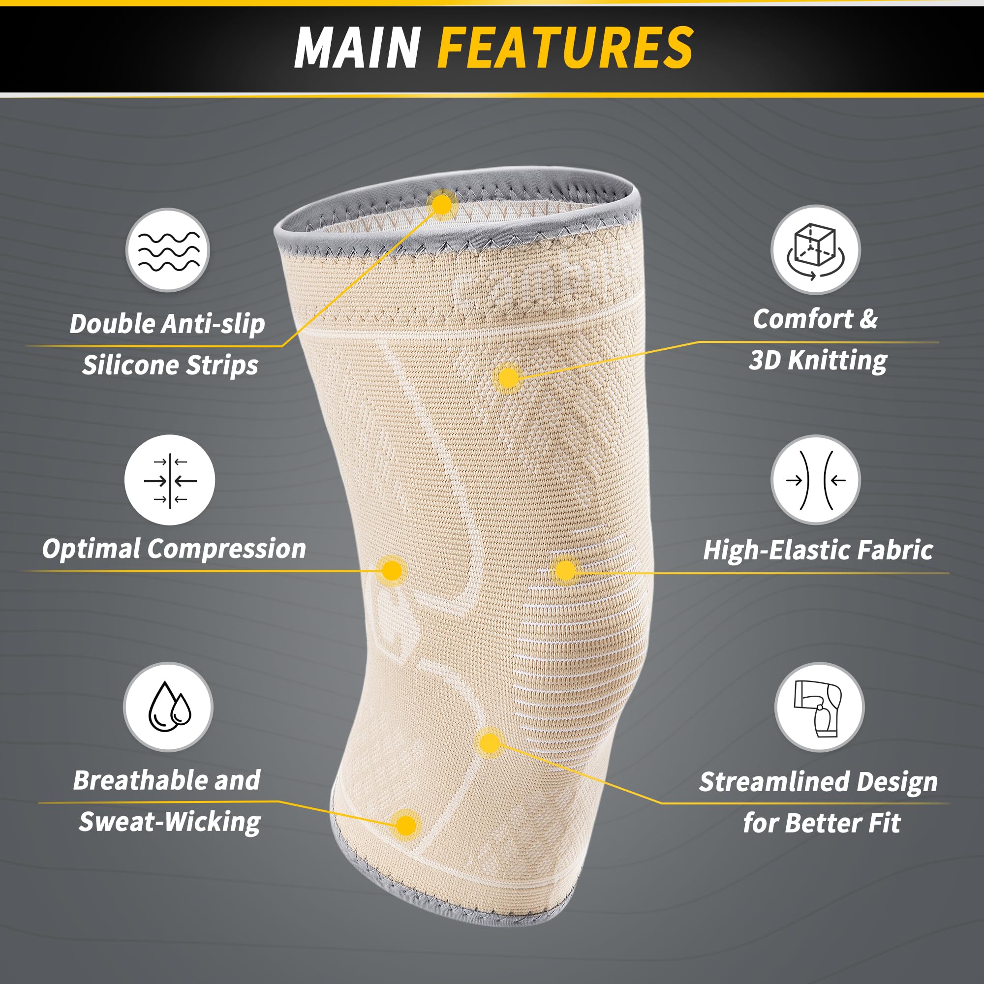 Optimal Comfortable Compression - Well-balanced between compression and comfort, these knee compression sleeves disperse the pressure and improve circulation around your knee area. Whether you’re walking or doing exercise, the knee braces provide you an adequate compression without restricting your movements