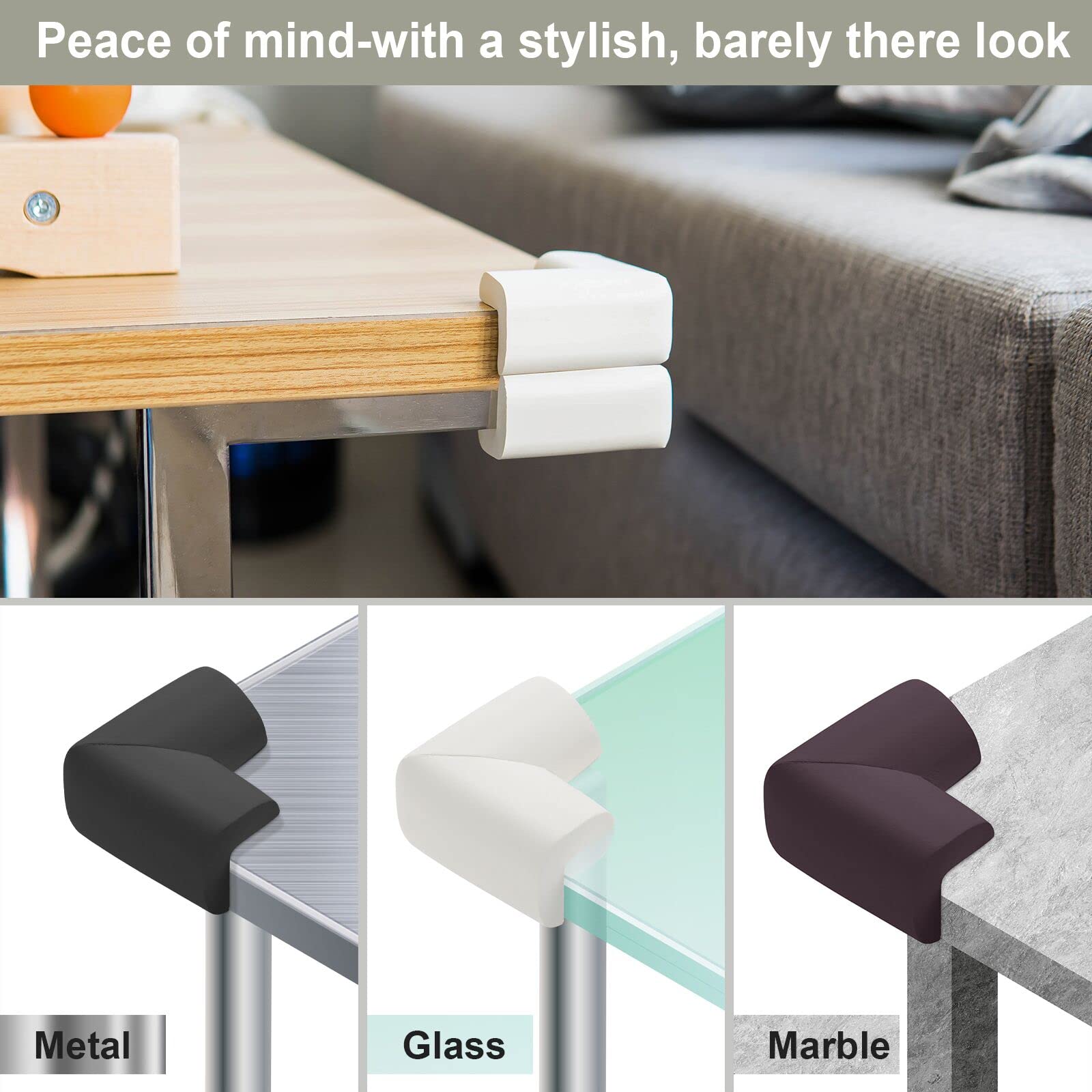 Safety Corners For Furniture :Use our child proof corner guard on sharp corners in your home to prevent any accidental scrapes from your child running into corners. Our Childproof Corner Protectors will stick to nearly any surface using long-lasting double sided tape. Use them on wood, glass, steel, and ceramic surfaces to baby-proof your home today