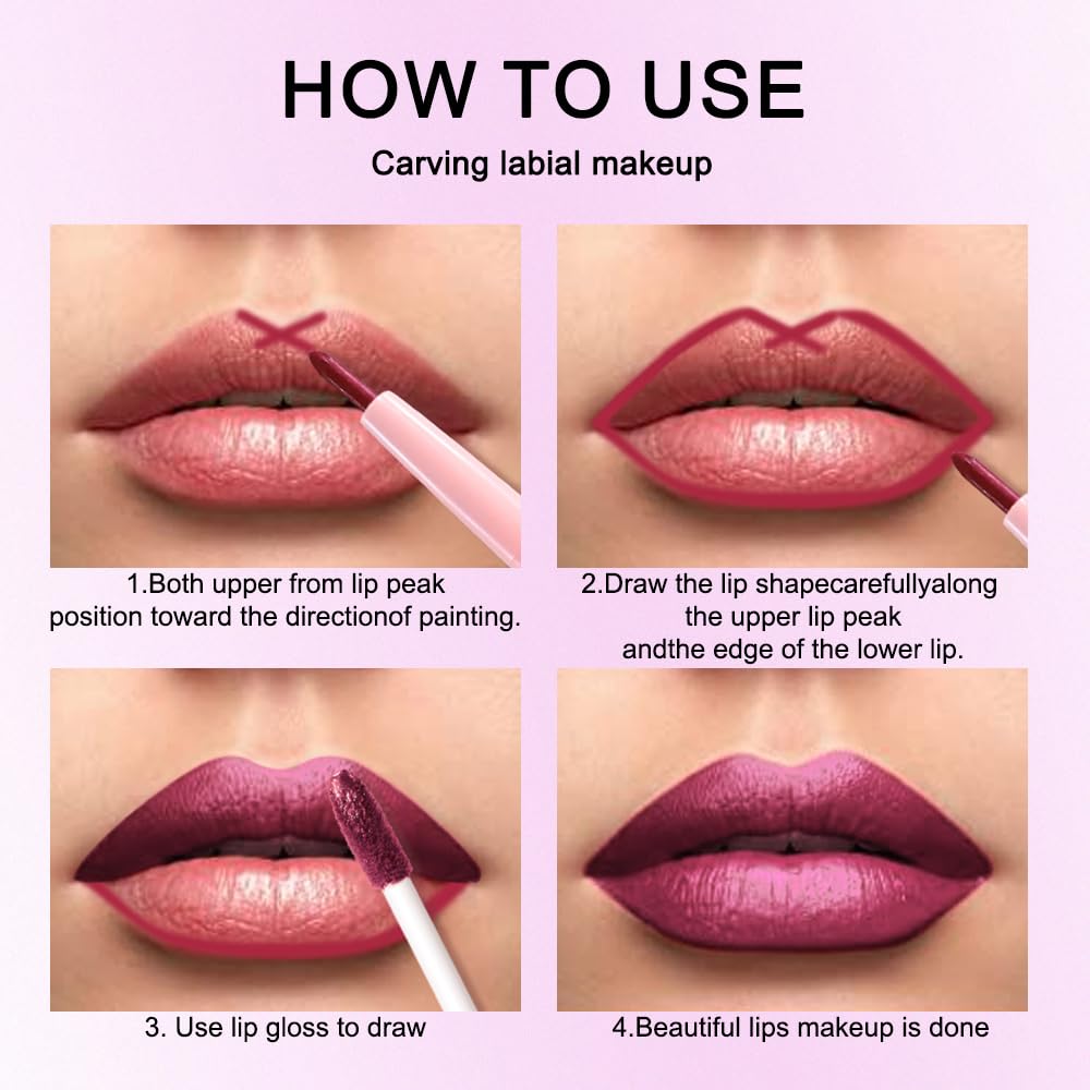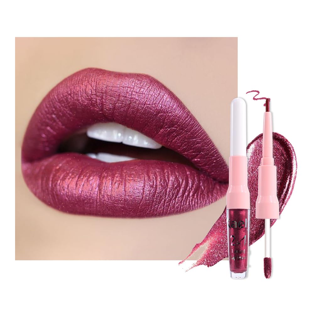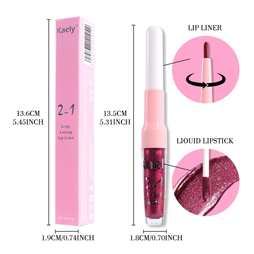 2 IN 1 Lip Liner & Metallic Lipstick: The double ended design made you can use lipstick and lip liner on both ends. New design with dual heads lipstick & lip liner in one, for draw delicate lip line before applying lipstick. It combines lip line and metallic lipstick and makes double-end lipstick more perfect,meets the need of all occasions.