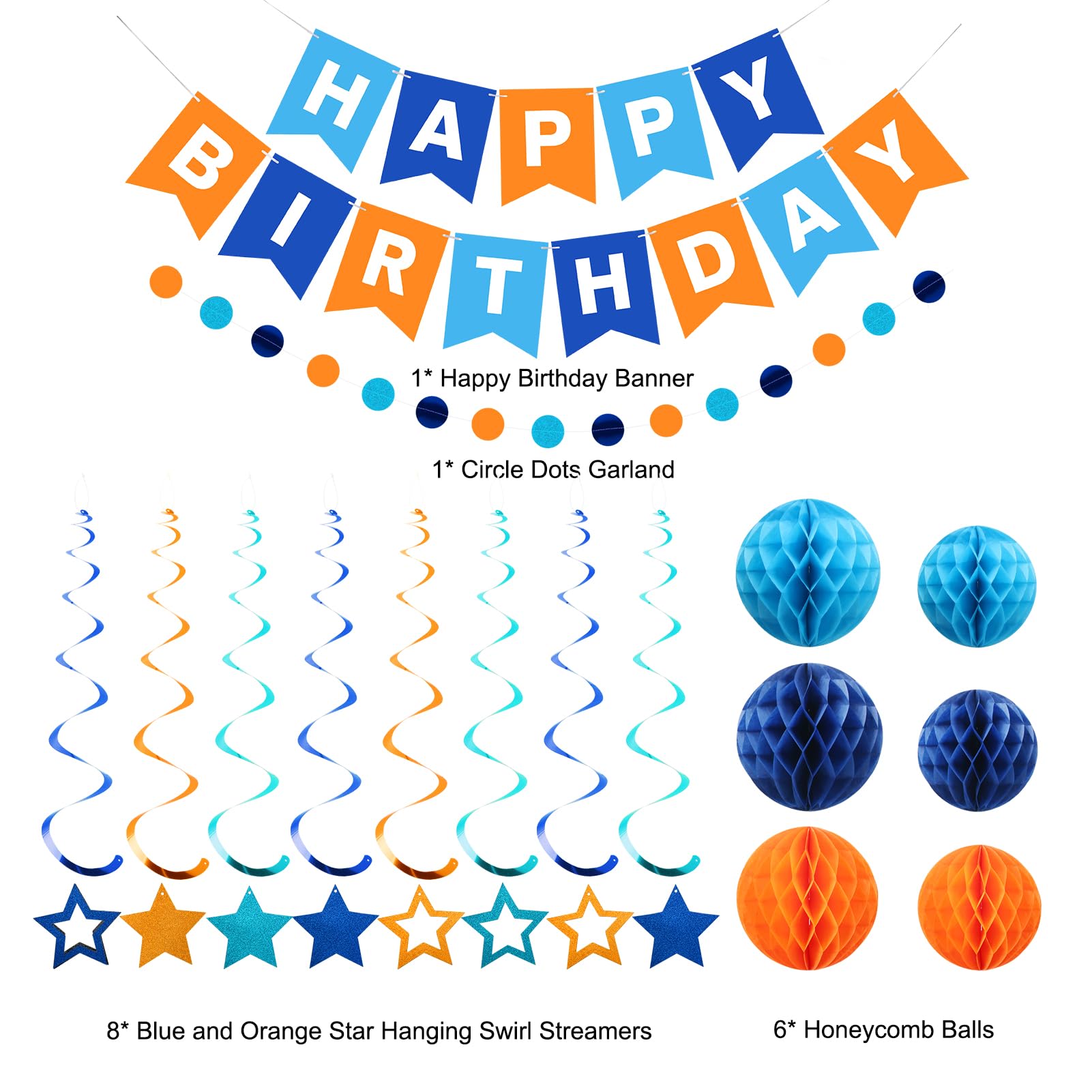 [Vibrant Blue and Orange Color]: Bring a burst of color to your birthday party with our Blue and Orange decorations, featuring a wide range of bright and bold colors, our decorations will create a lively and festive atmosphere that your friends and family will love.