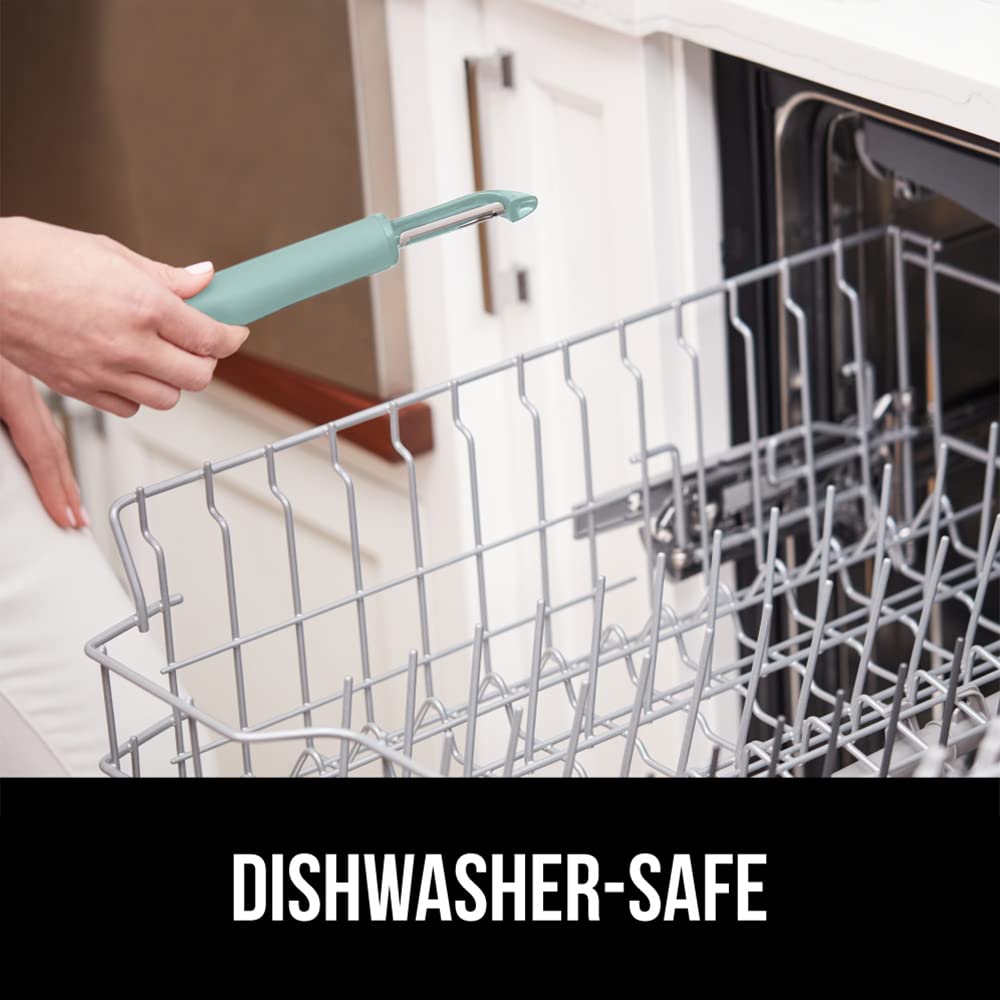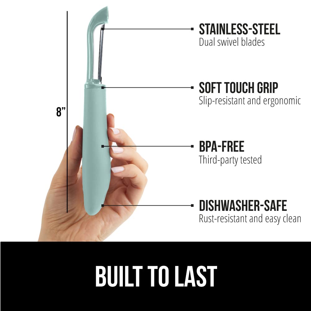 SHARP STAINLESS STEEL: extra sharp and durable blades easily peel through even the thickest and toughest of produce; constructed from durable and rust-resistant stainless steel and designed to last; BPA-free, food grade, and dishwasher safe for easy cleaning