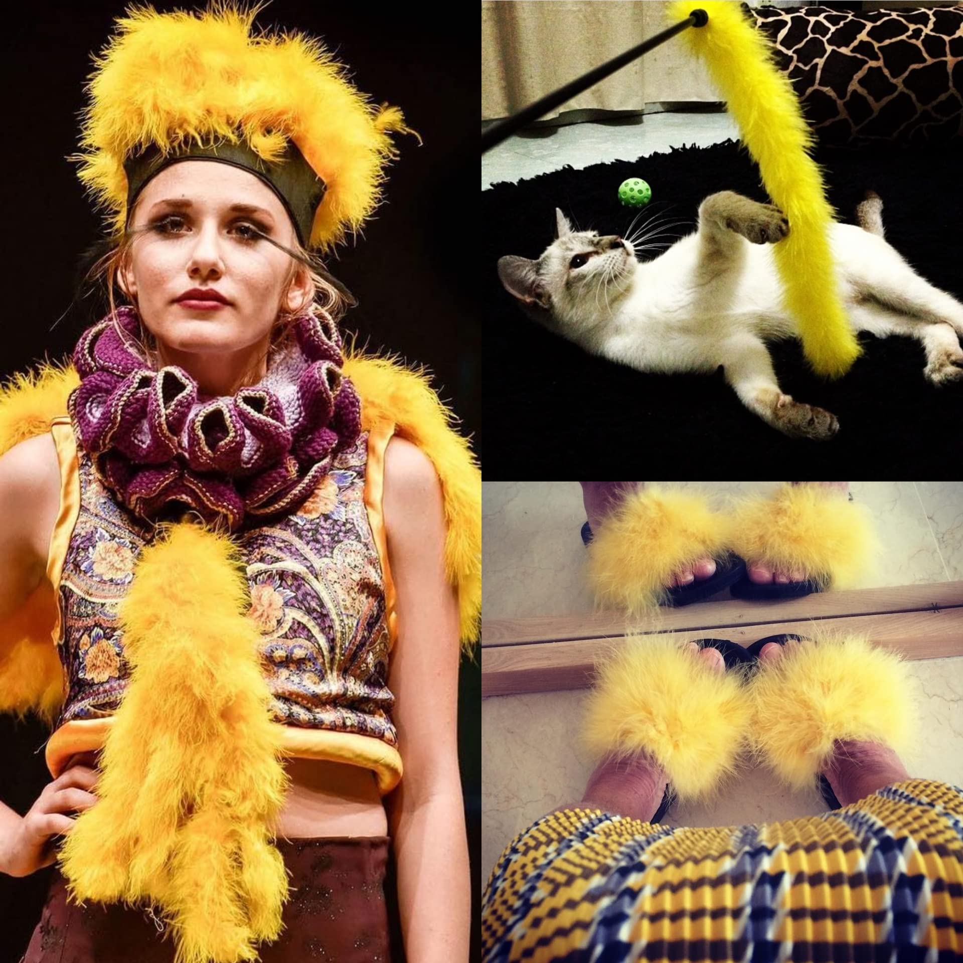 Suitable Various Handmade Decorations: Each yellow feather boa can be cut to shorter lengths for DIY skirts, shoes, bags, headbands, funny cat stick and christmas tree decoration