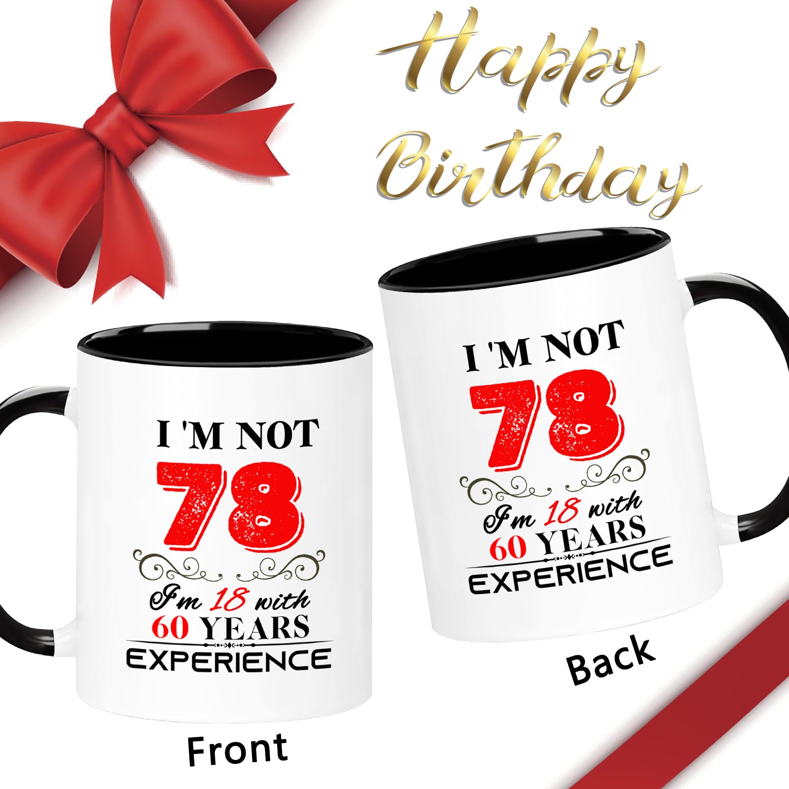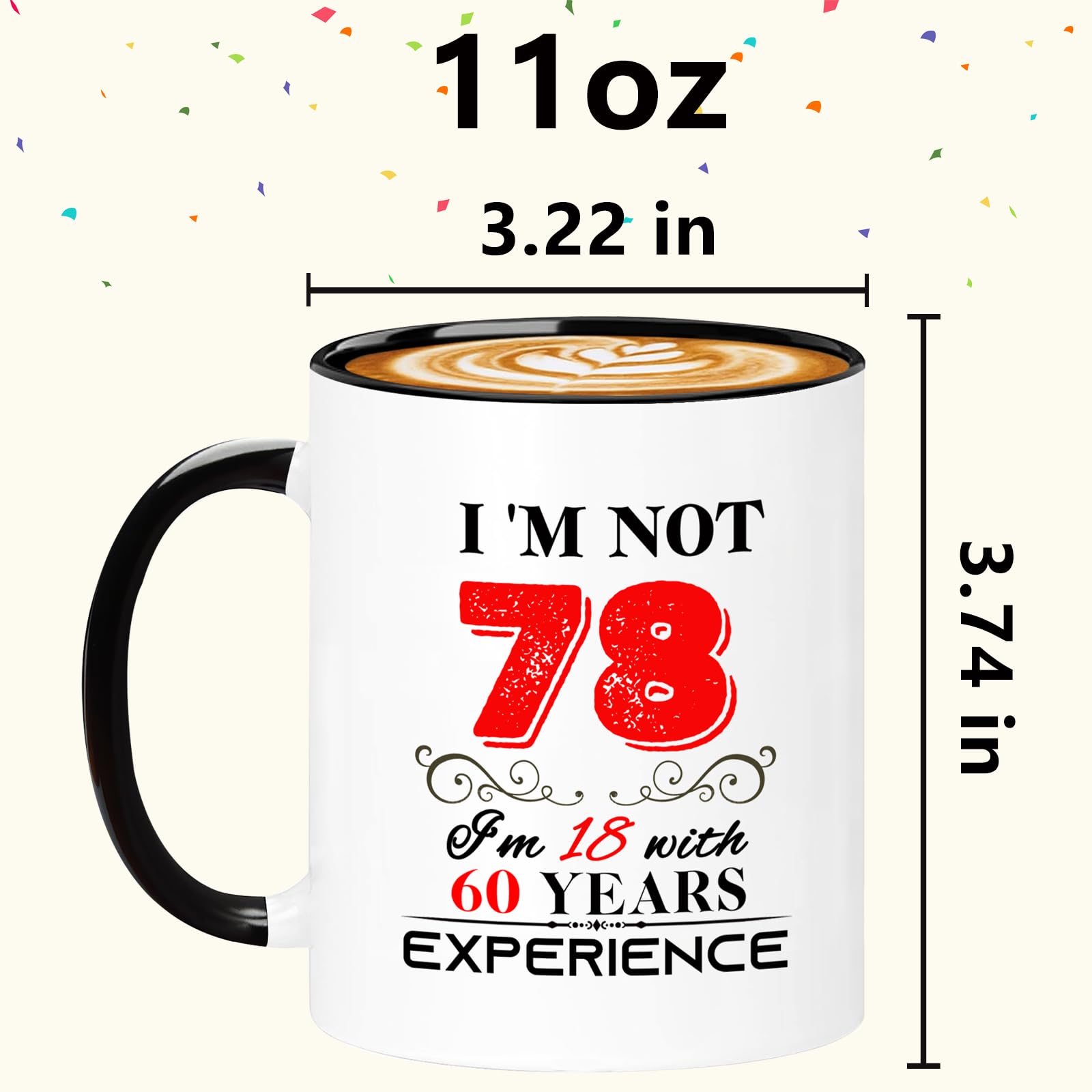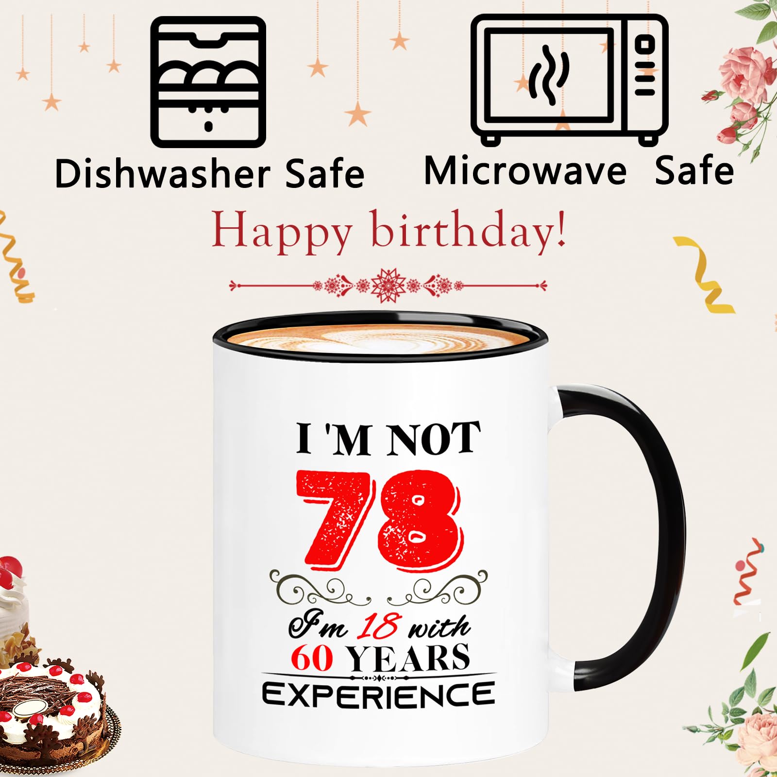 【Birthday Gift】: This funny "I'm not 78, I'm 18 with 60 years experience" Mug is the perfect birthday gift for a 78 year women men! Give it to your mom, dad, papa, mama, brother, sister, husband, wife, aunt, uncle, cousin, son, daughter, boyfriend, girlfriend, boss, coworkers, bestie, granddaughter, or your best friend for her he birthday.