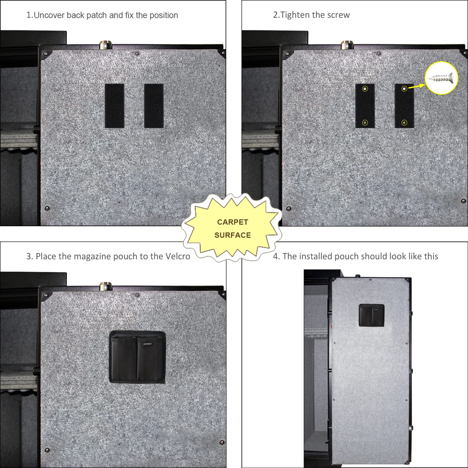 Good idea to move your mag from the shelf, be attached to your door panel. Both carpeted or non-carpeted door.