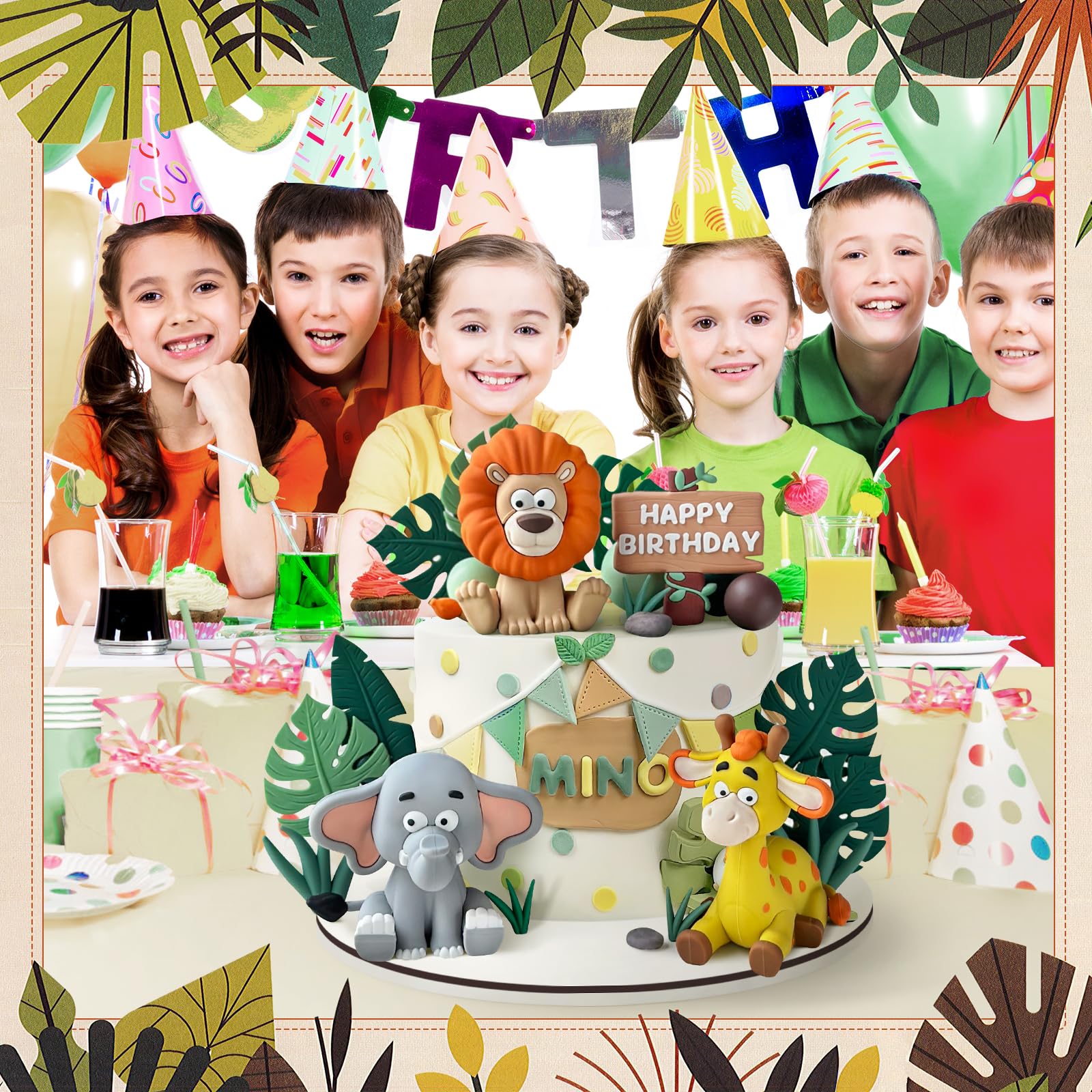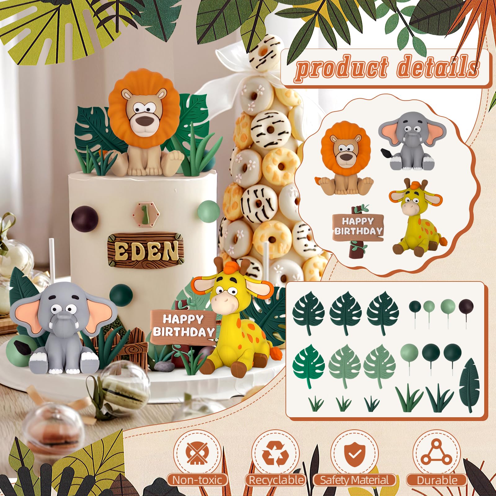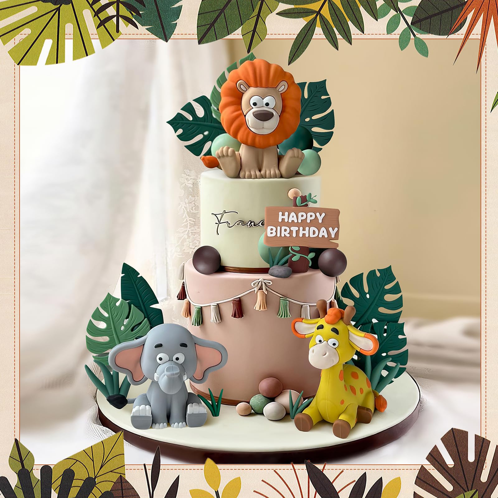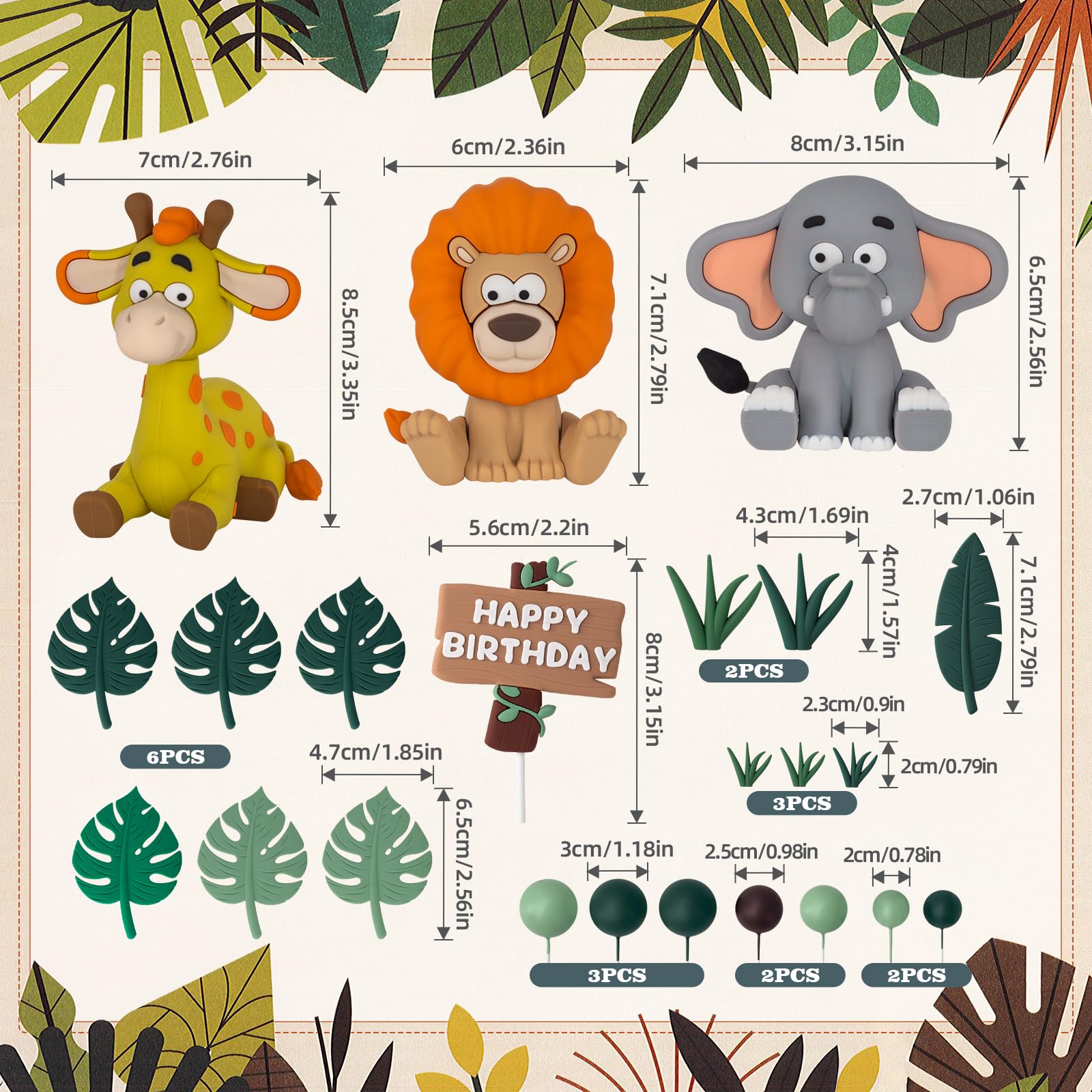 Material: These safari animal cake toppers Happy Birthday sign and leaves little grasses cake toppers are made of resin, The peals balls cake decorations are foam, the jungle animal cake topper set is reliable, and no odor, not easy to break or tear