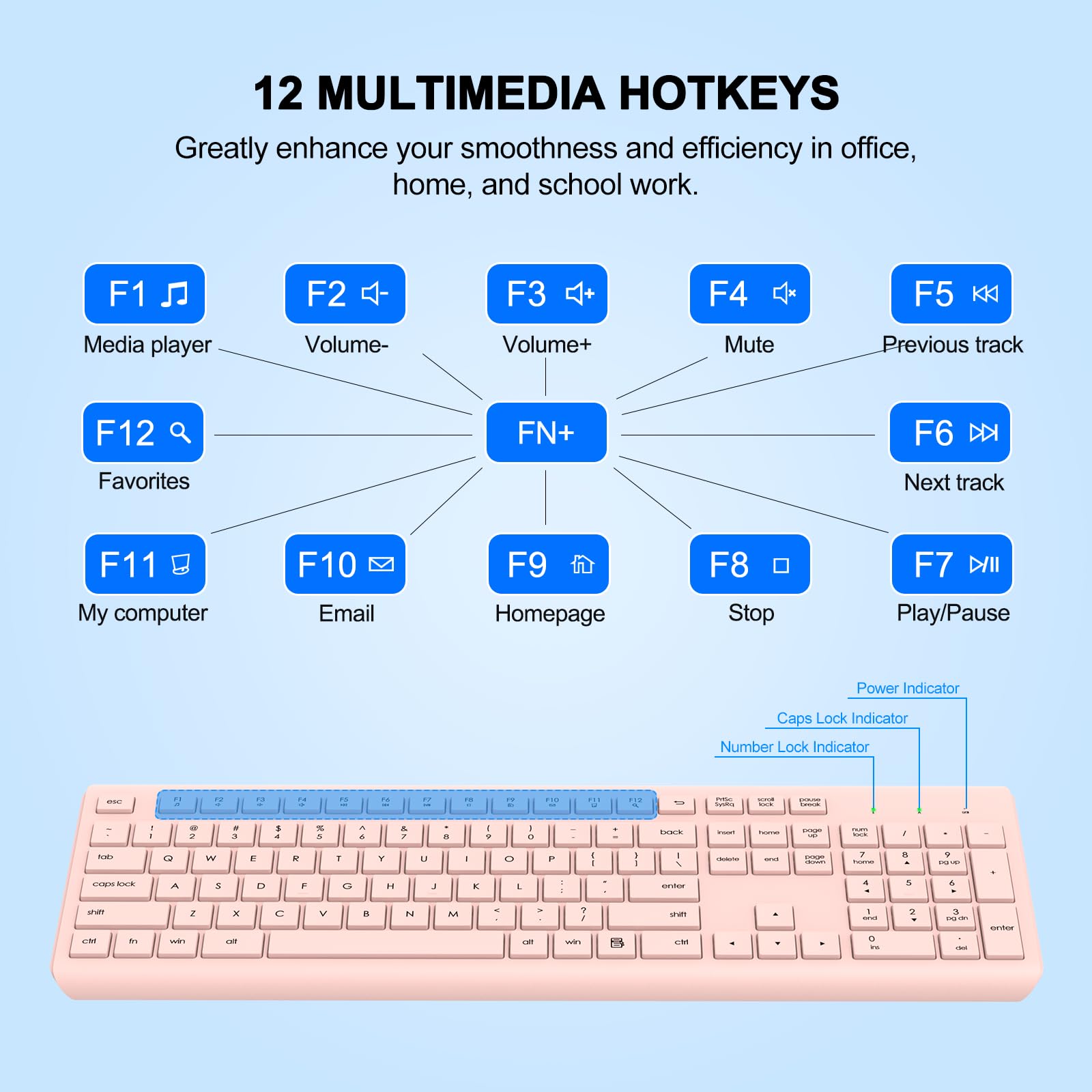 【Less Noise, More Quiet Keys】: Soft membrane keys provide a quiet and comfortable typing experience, So you can type with confidence on a wireless keyboard crafted for comfort, precision and fluidity. The wireless mouse adopts silent micro-motion technology, which is almost completely silent when clicked. No more concerns about disturbing others.