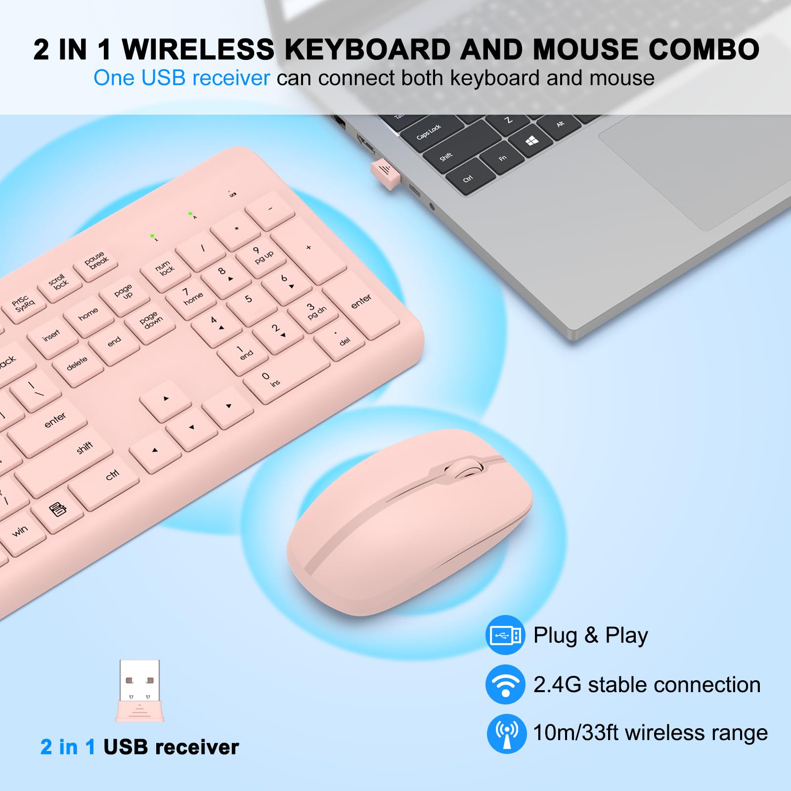 【Long Battery Life】: Up to 365 Days of battery life for keyboard and mouse wireless, say goodbye to the hassle of charging cables and replacing batteries. After 10 minutes of inactivity, the wireless keyboard mouse combo will automatically go into sleep mode to save energy. The wireless keyboard requires one AAA battery, and the wireless mouse requires one AA battery.
