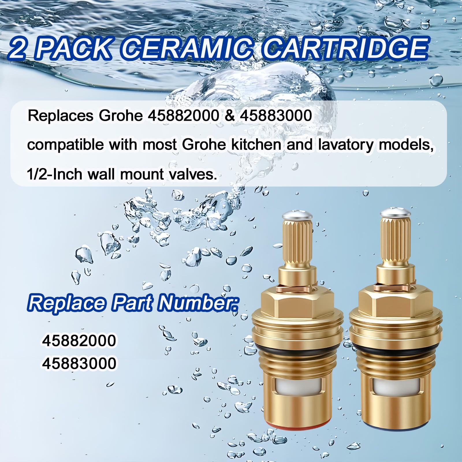 Package Content: You'll receive 2 Pack faucet ceramic cartridge for Grohe 45882000 45883000 – The 45882000 valve cartridge is commonly used on the hot end or the left side, while the 45883000 valve cartridge is typically used on the cold end or the right side to meet the usage requirements of different positions