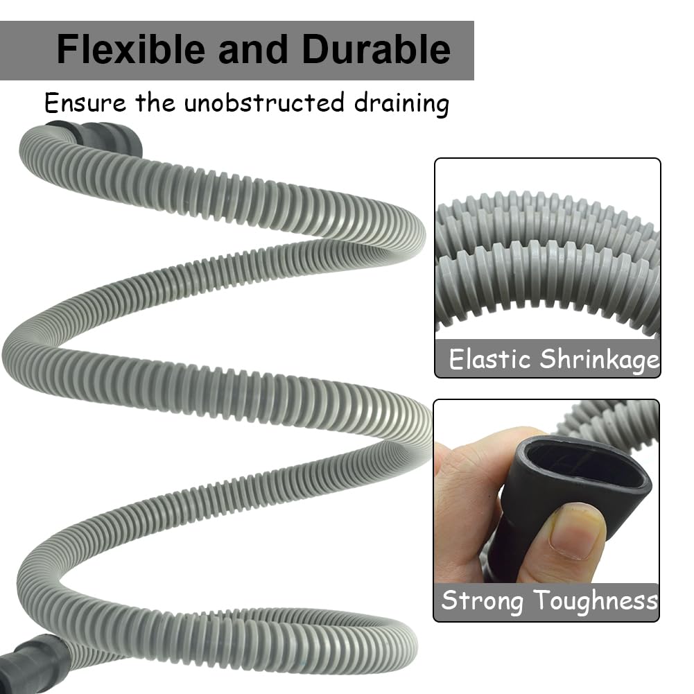 【Durable & High-Quality Construction】Made from industrial-grade polypropylene, this discharge hose is resistant to heat, corrosion, and bursts, ensuring it performs reliably over time. The flexible corrugated design allows for easy maneuvering in tight spaces without compromising strength.