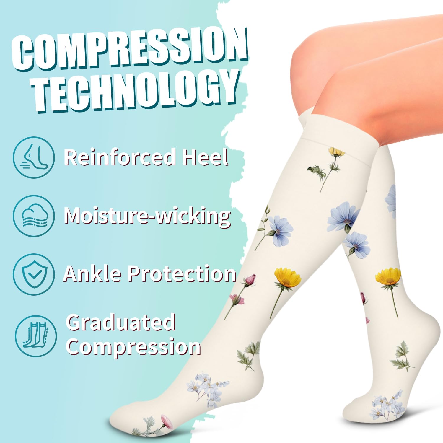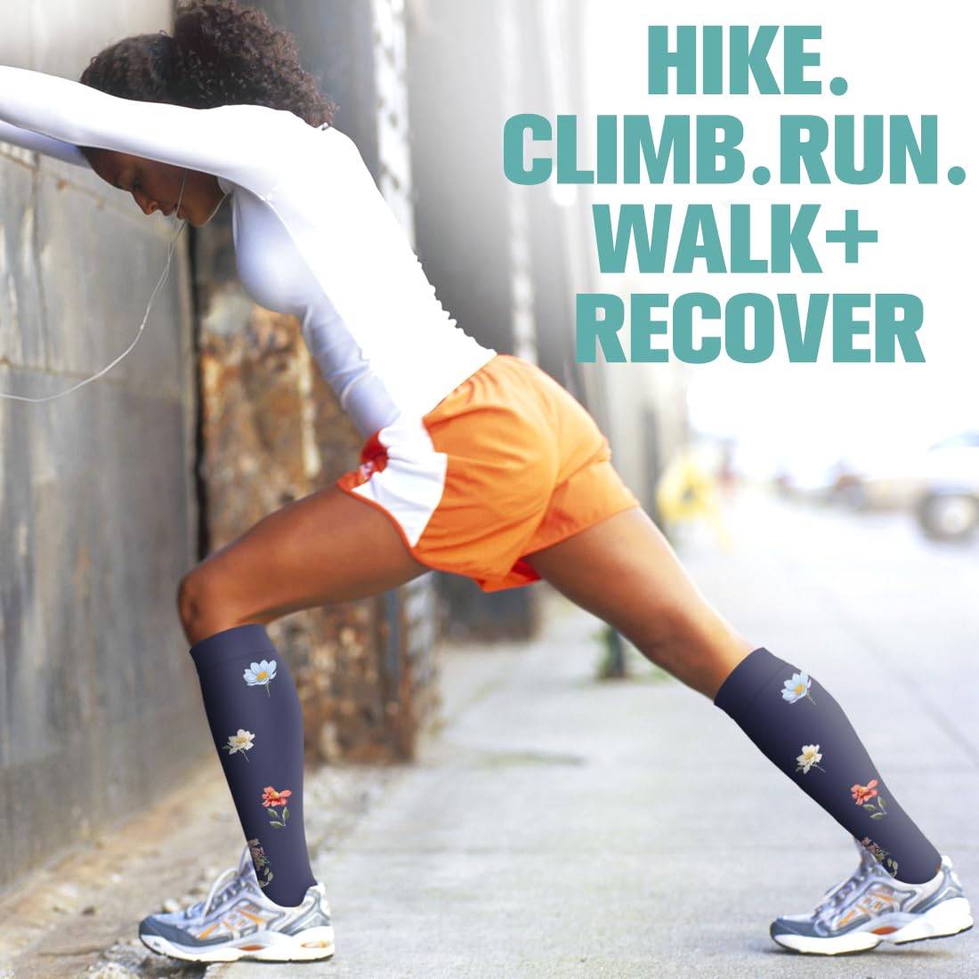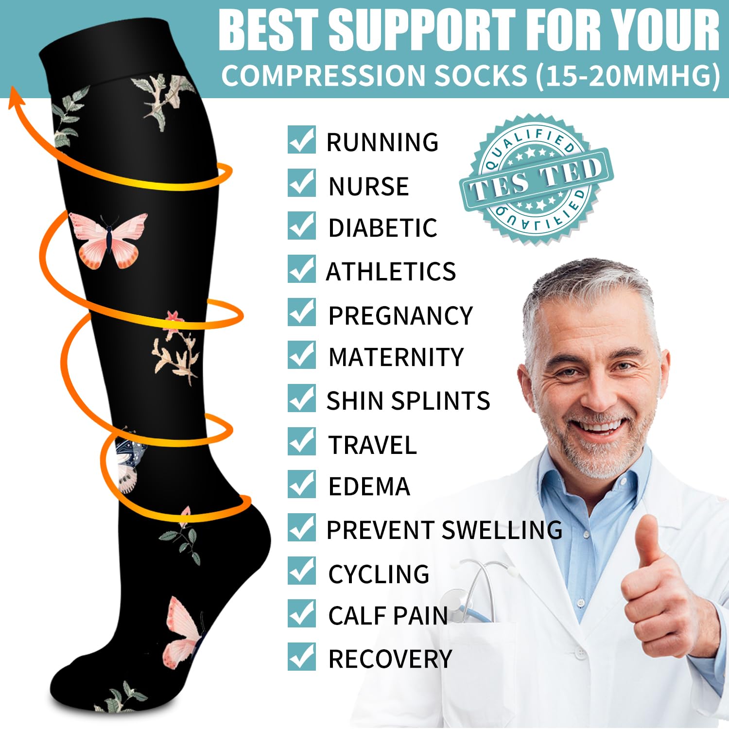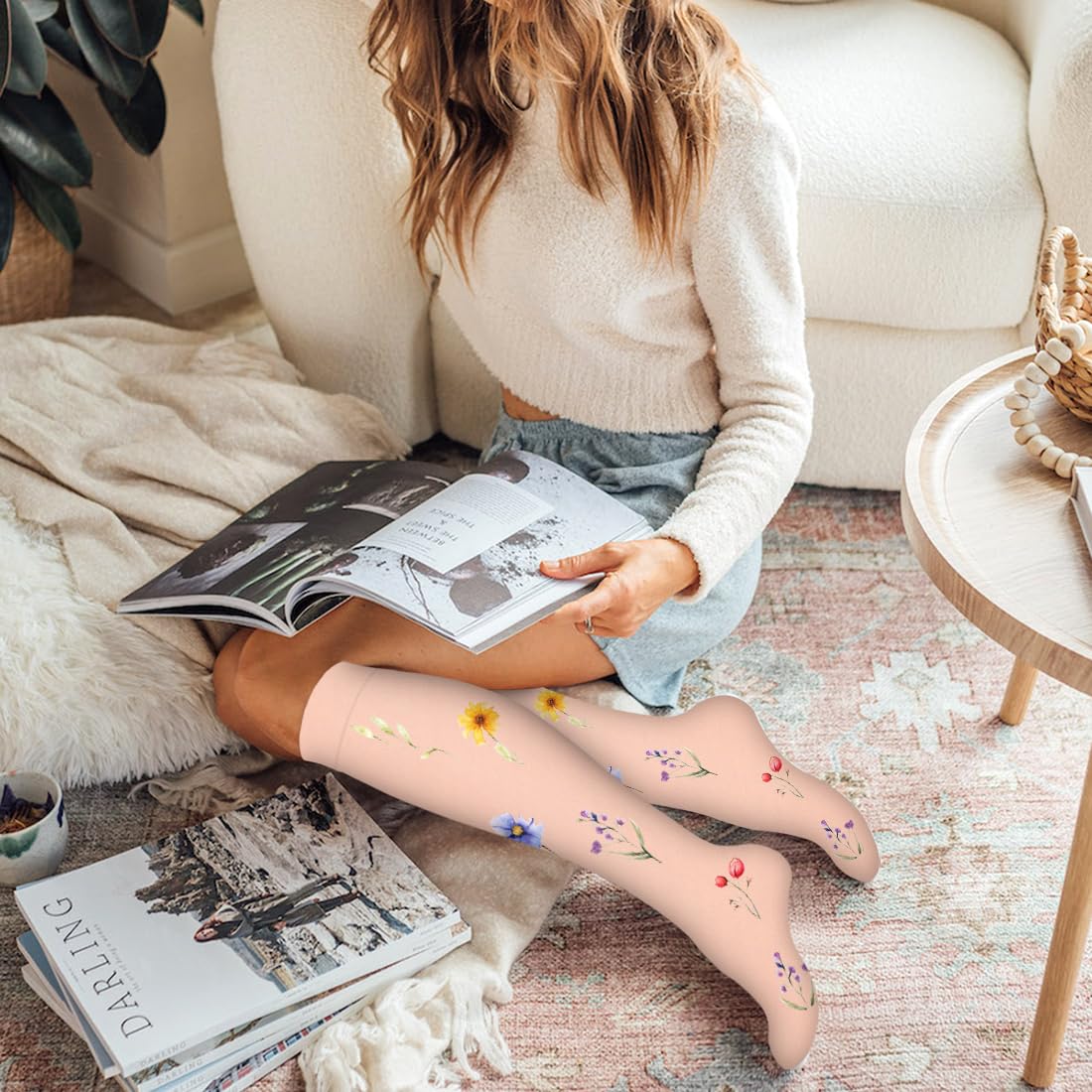 AMAZING EFFICACY-With a unique compression level that isn't too loose or too tight,it means you can wear our compression socks for women all day long comfortably.As they gently constrict the tissues and oxygenate the blood,they move waste fluids out,promoting ample circulation.Remove stress and stimulate every cell,reduce fatigue,soreness,cramping and prevent Varicose veins at the same time Ensure the healthy functioning of your circulatory system.Keep your legs feel fresher and more energized.