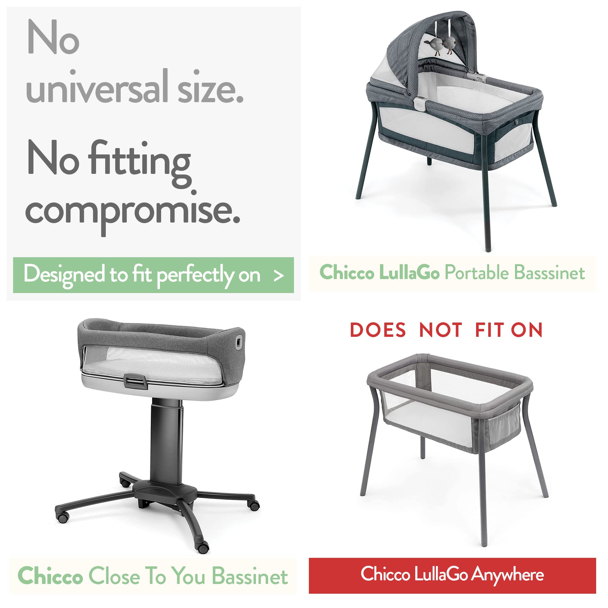 ✔ PERFECT CUSTOM FIT – EASY ON, WON’T SLIP OFF: Every Joey + Joan bassinet sheet fits SPECIFIC MODELS, so they easily slip onto your baby mattress, with ZERO WORRY THEY’LL ACCIDENTALLY SLIP OFF over baby’s head. These bedside bassinet sheets are compatible with Chicco LullaGo Nest & Primo portable bassinet (Not for LullaGo Anywhere), Chicco Close to You Bedside Bassinet and Next2me Side Crib