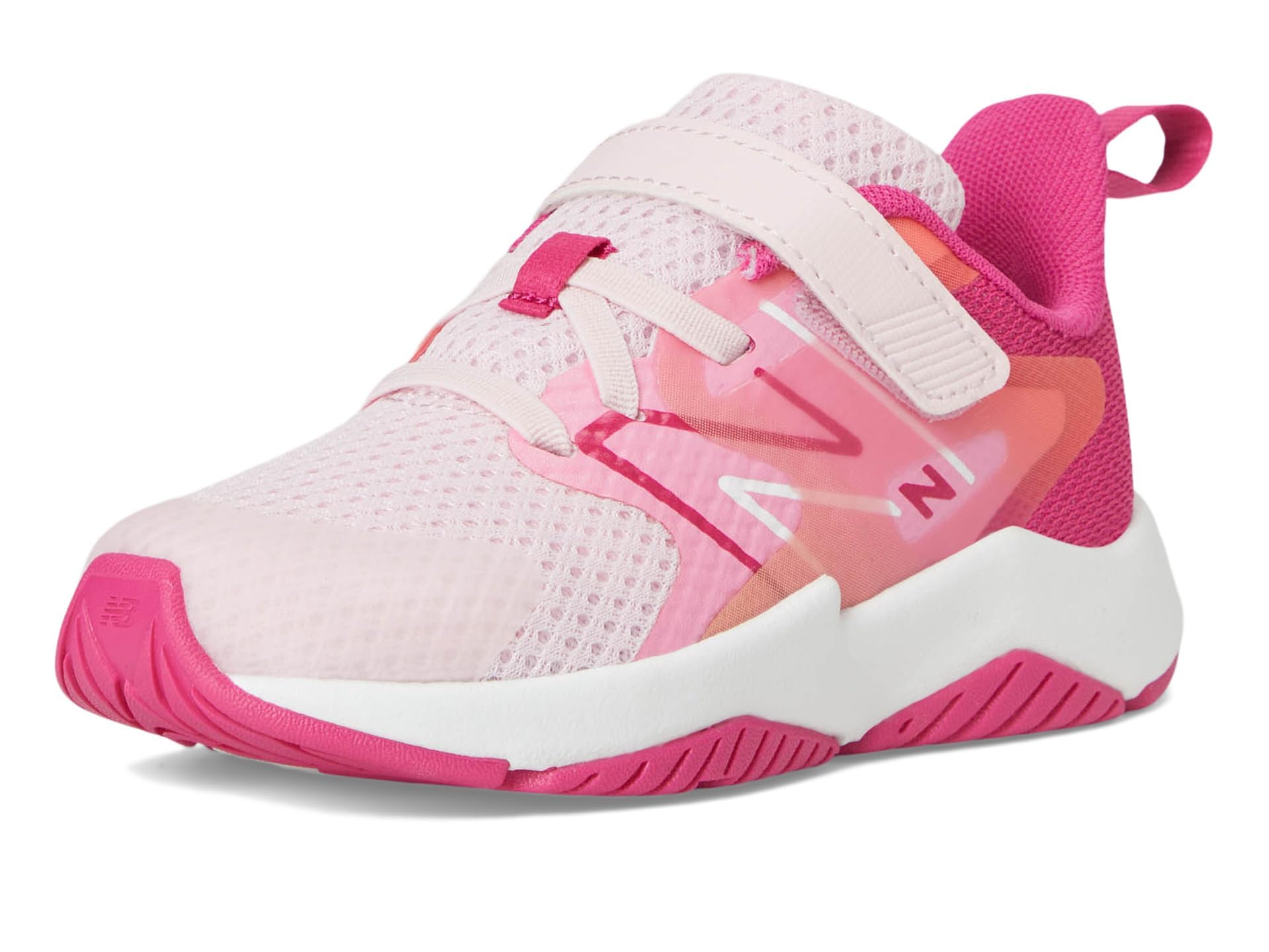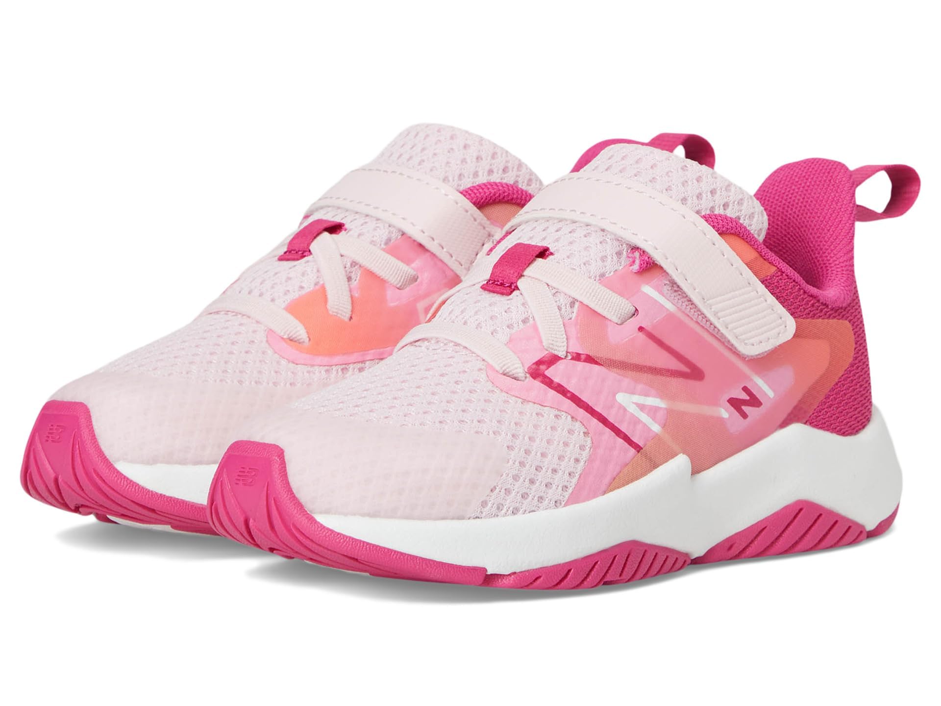 Description The Rave Run v2 Bungee Lace with Hook and Loop Top Strap kidsβ performance running shoe from New Balance offers soft comfort with a youthful vibe. The lightweight mesh and synthetic upper is breathable, with a no-sew tip for durability and no-sew saddle for midfoot support. Itβs designed with an IMEVA midsole that helps offer superior underfoot cushioning and a durable rubber outsole that can stand up to all-day play. An alternative closure allows for quick-and-easy changes that won't slow active tots down.