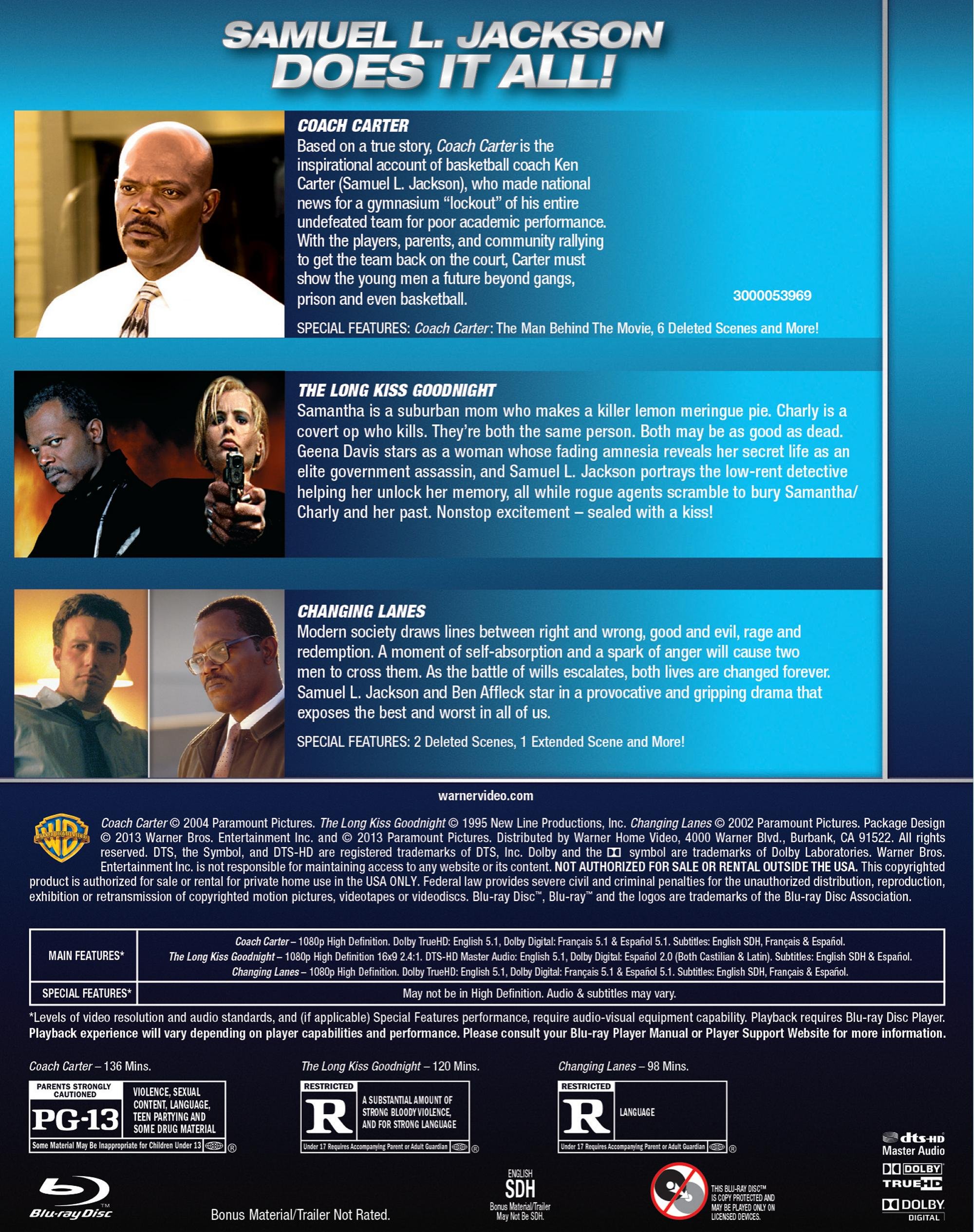 Samuel L. Jackson: Triple Feature (BD) (Coach Carter, Long Kiss Goodnight The, Changing Lanes) ]]>