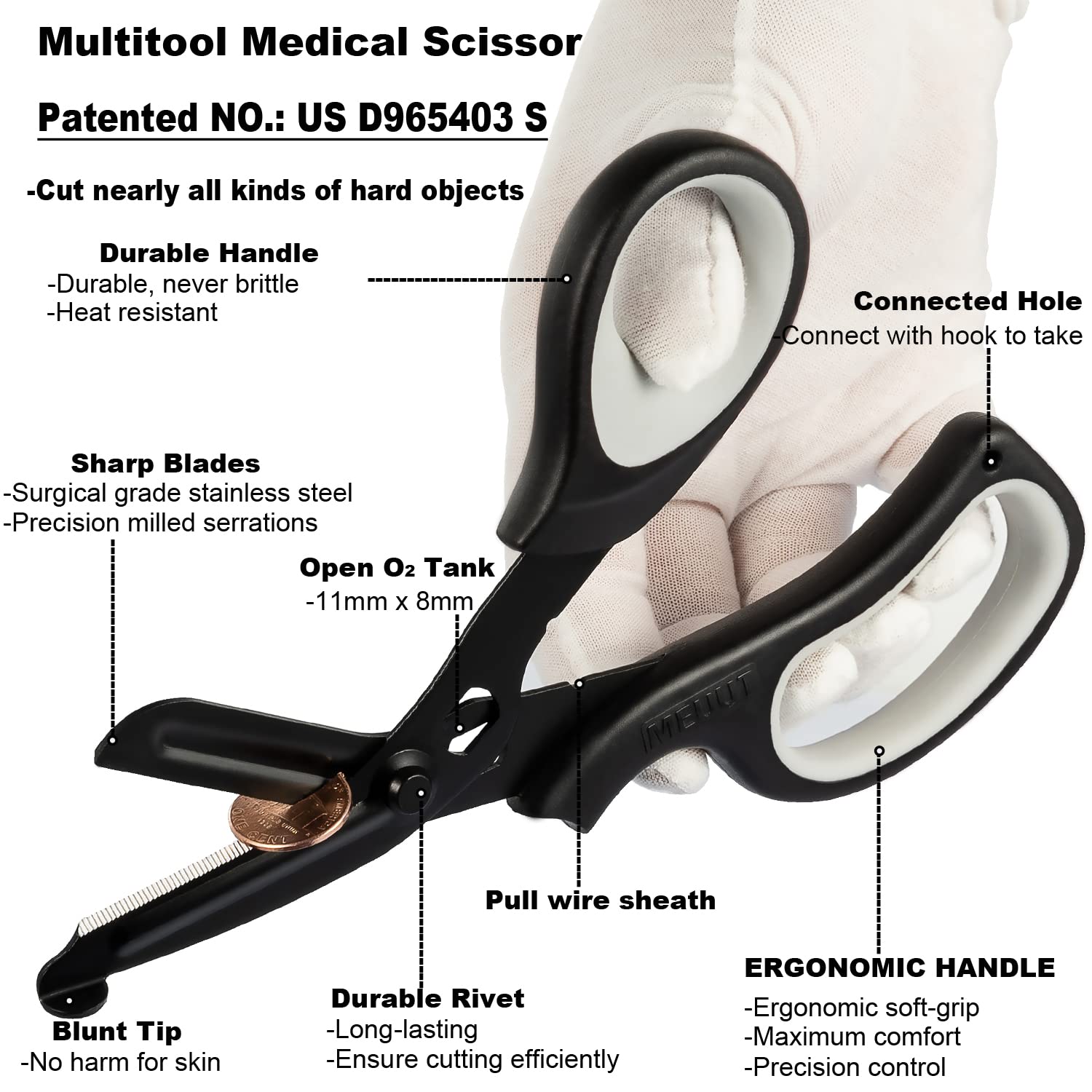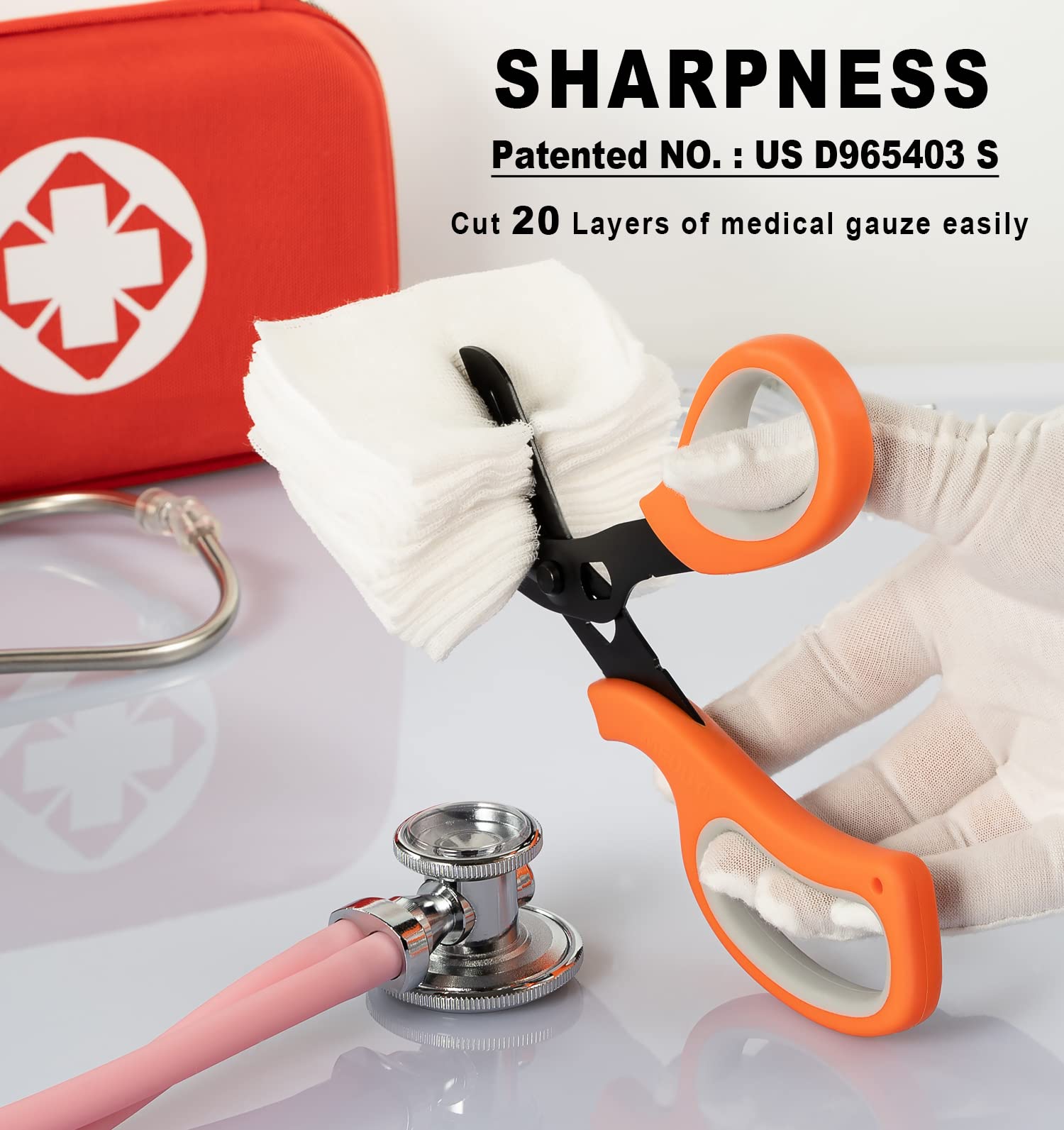 【HIGH QUILITY】: 100000 times cutting test passed, heavy duty trauma shears, made of surgical grade stainless steel 440 blades with milled serrations, fluoride-coated non-stick surface with lightweight and soft grip handle.