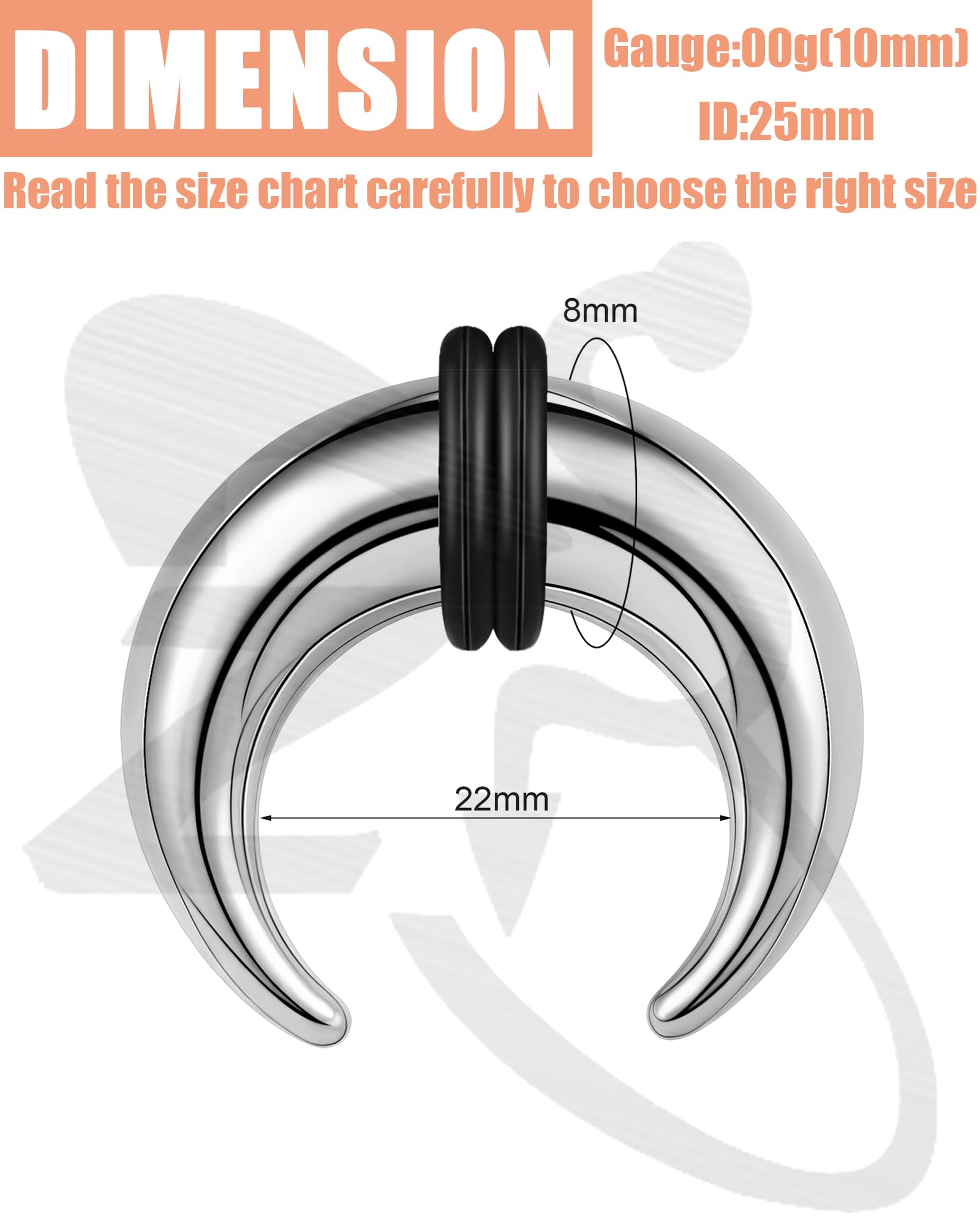 ❀Septum Pincher Size Reference——Septum piercing taper gauge: 16g(1.2mm), 14g(1.6mm), 12g(2.0mm), 10g(2.5mm), 8g(3.0mm), 6g(4.0mm), 4g(5.0mm), 2g(6.0mm), 0g(8.0mm), 00g(10mm); Inner diameter: 8mm/ 10mm/ 11mm/ 12mm/ 15mm/ 16mm/ 18mm/ 22mm/ 25mm. Select suitable size to easily expand your piercing place without too much pain.