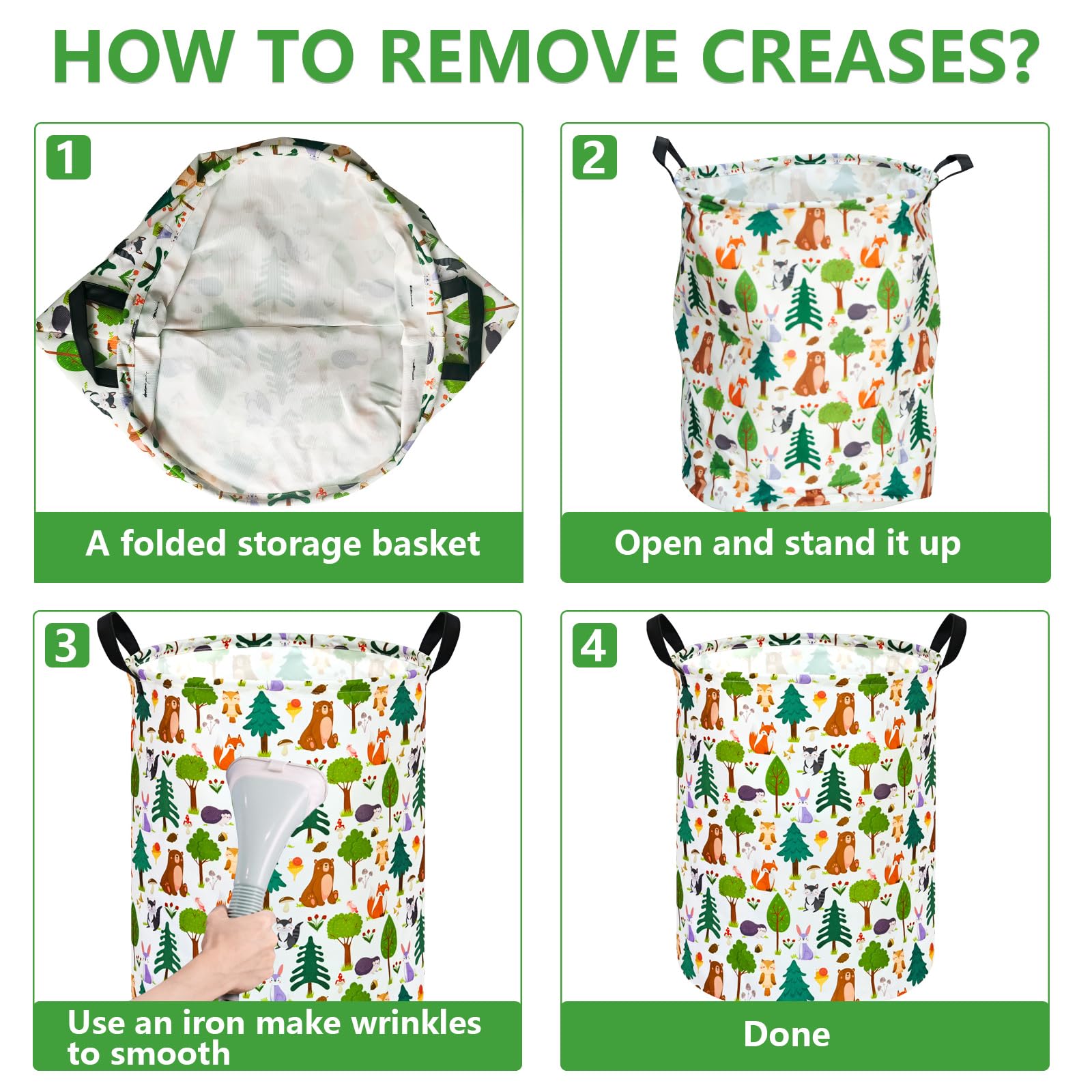 IMPORTANT NOTE:The laundry hamper comes with compression packing which may result in wrinkles during long-distance transportation. It will recover after a period of time and can also become smooth by steam iron or hairdryer
