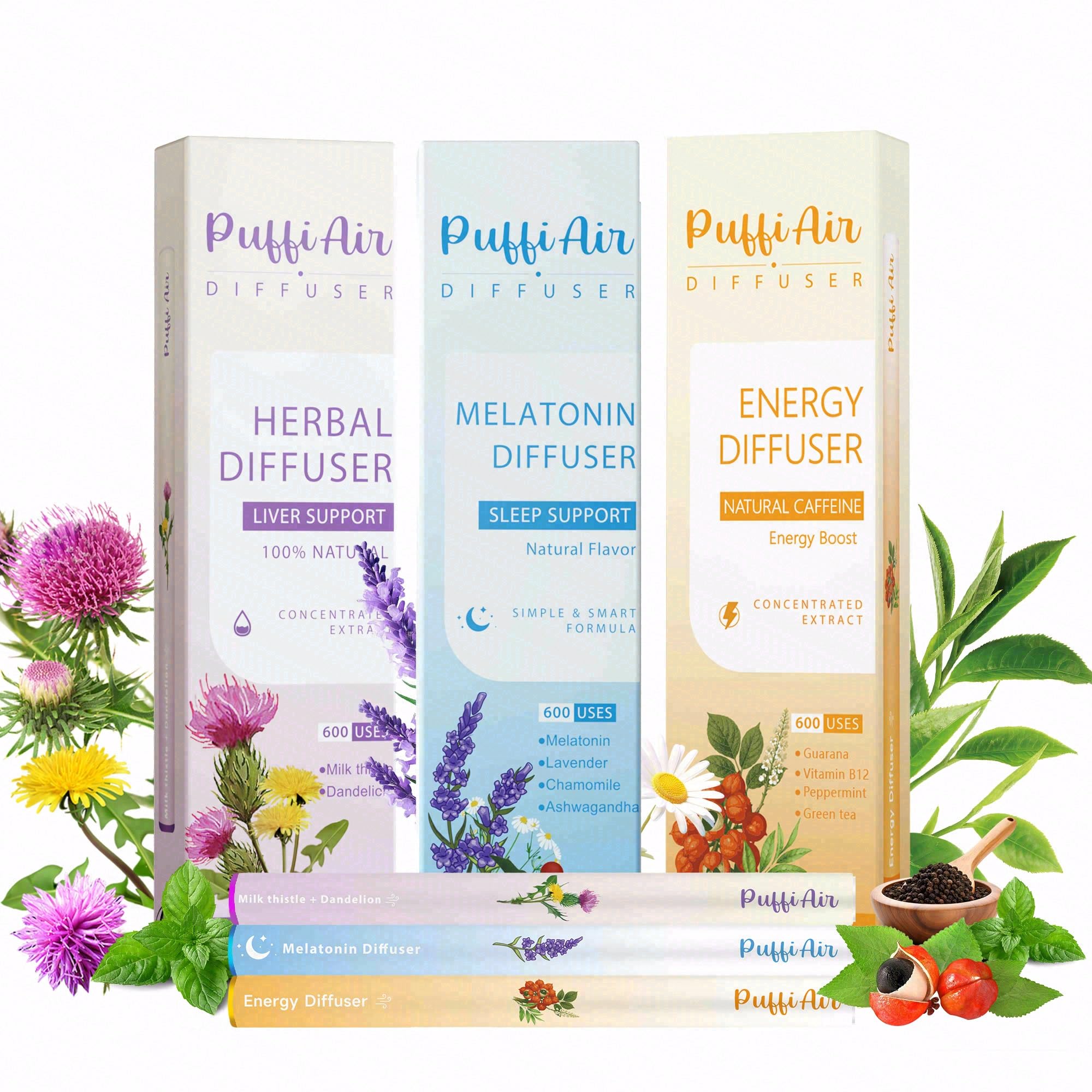 SUBTLE LIFESTYLE SHIFTS: This trio offers a gentle alternative for healthier habits. Pen-like diffusers add intentional care (energy, balance, relaxation), fitting small daily rituals to ease into balanced, healthier living—one breath at a time.
