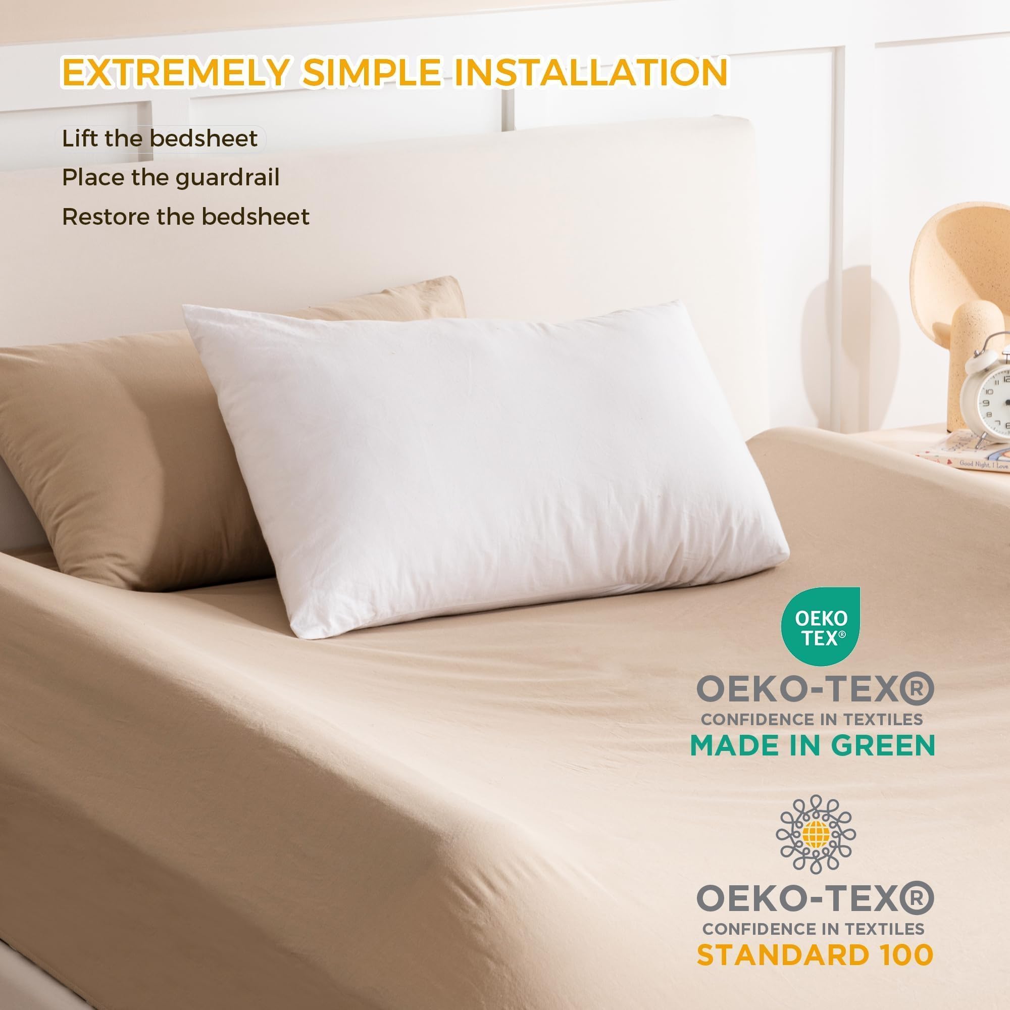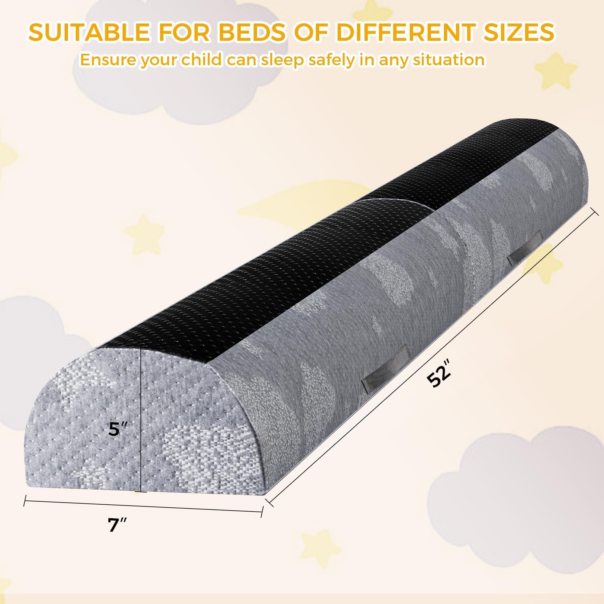 Reliable Safety and High Compatibility: Our product meets CertiPUR-US, 16 CFR 1224 (ASTM F2085), OEKO-TEX STANDARD 100, Made in Green, CPC, CPSC, CPSIA certification standards, using carefully selected materials that comply with strict safety standards and regulations for infant products. With dimensions of 52x7x5 inches, it can be flexibly adapted to twin, full, queen, and king-size beds. It is an ideal safety solution for infants, children, the elderly, or adults requiring care.