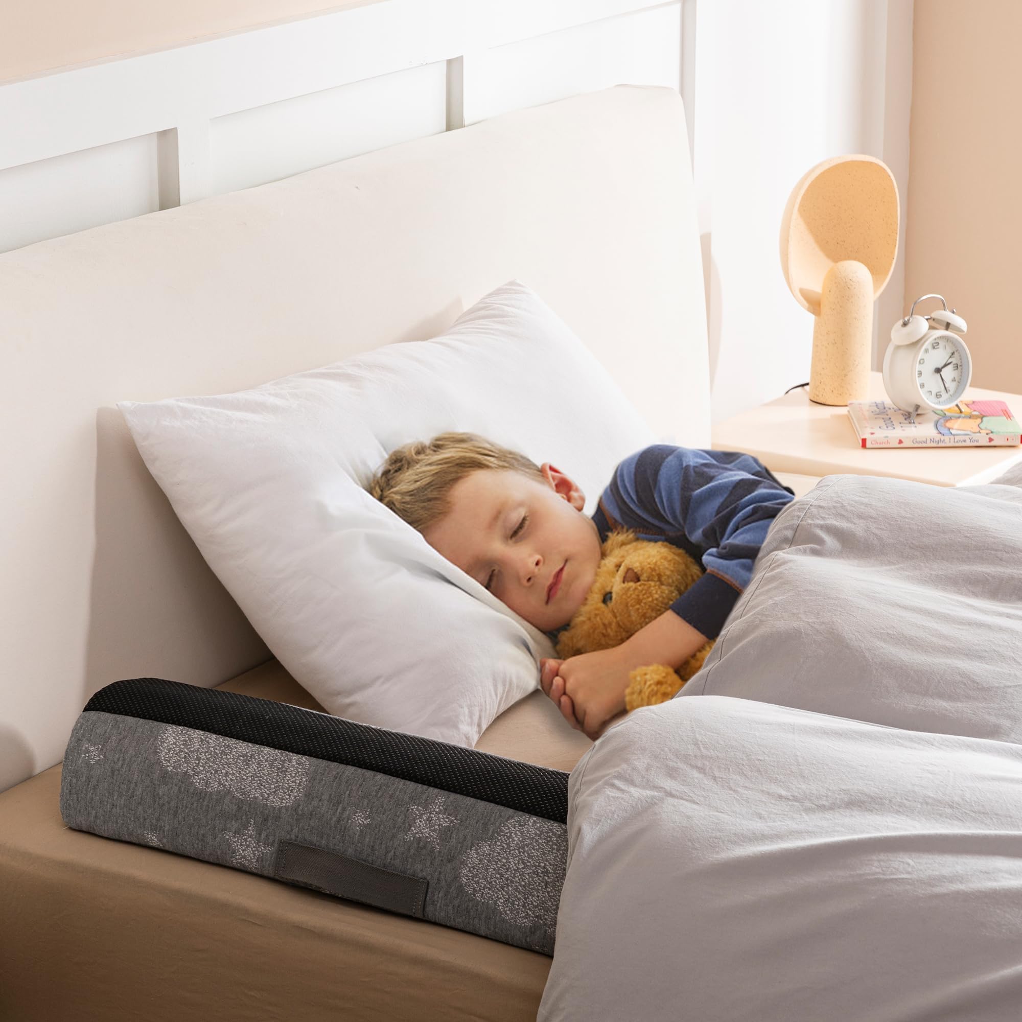 Soft Touch, Firm Protection: Unlike traditional cage-like metal bed rails, our product eliminates the risk of bumps. It does not hinder a child's conscious movement in and out of bed, fostering independence. It does not obstruct vision or provoke resistance in babies, nor does it incite the desire to climb over. Won't disturb other family members' rest. Young children can perceive that they are at the edge of the bed. Assists parents in safeguarding their baby through each peaceful night!