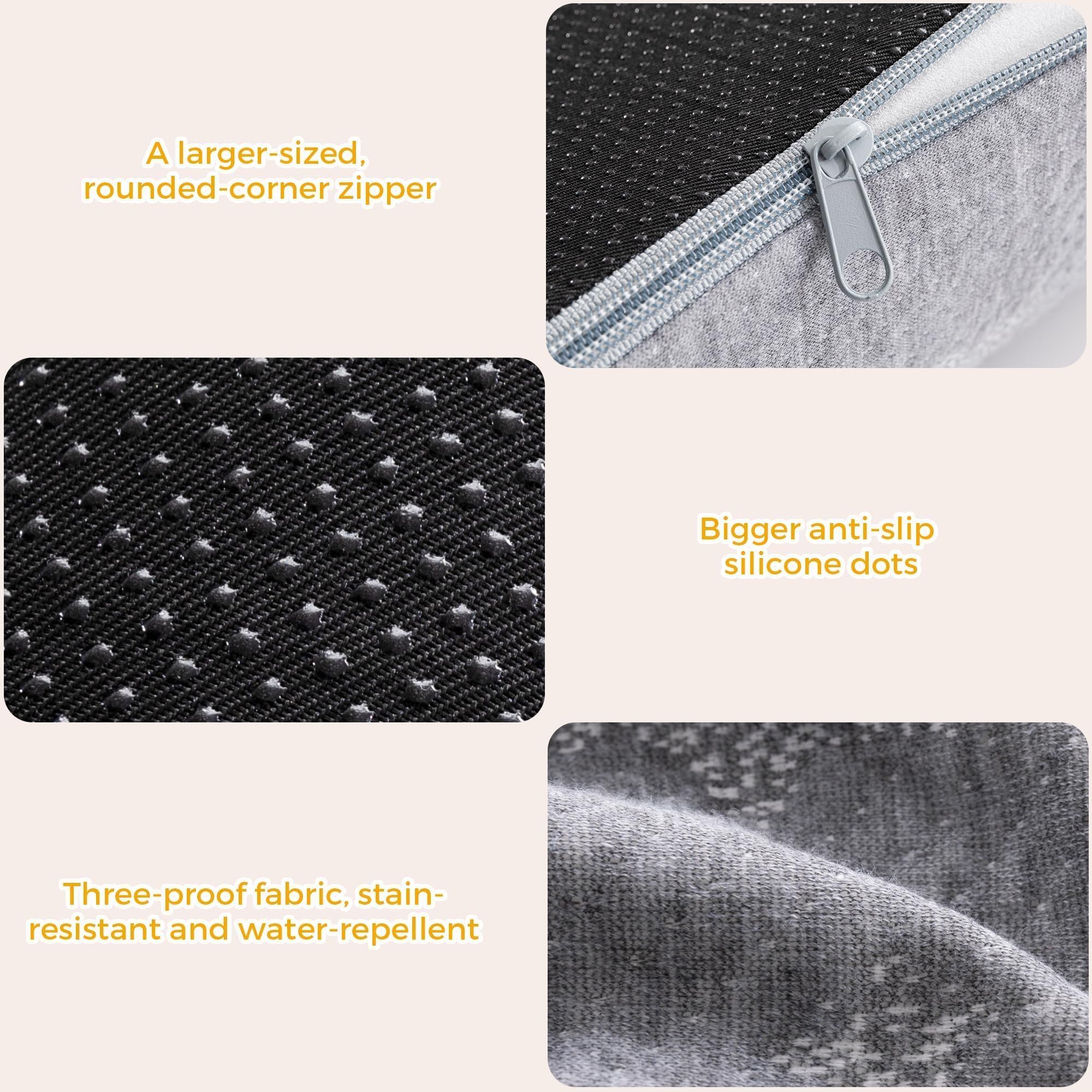 Strict Material & Quality Control: The bumper is made of high-density 25D foam for optimal support. The bottom and top feature raised 100GSM anti-slip silicone dots, ensuring stability throughout the night without slipping. The zipper uses a robust #5 model, hidden for durability and softness. The detachable 280GSM bamboo cotton cover is soft, lightweight, breathable, easy to remove, water-, oil-, and stainproof. Adorable cartoon prints of stars and clouds accompany your baby to sleep.