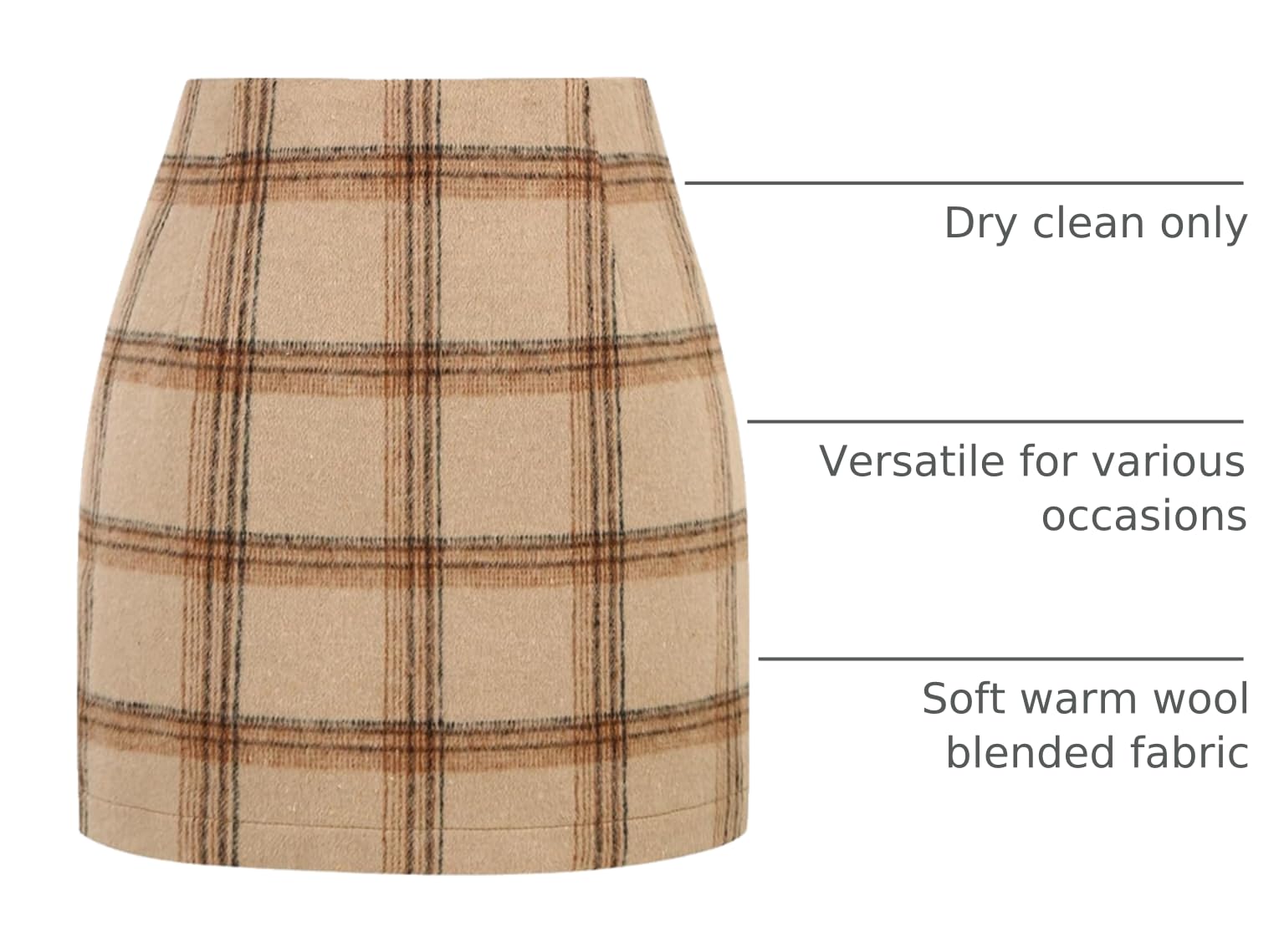 Women's plaid skirts 2023 fall winter wool high waist bodycon pencil mini skirts for ladies/teens/juniors.