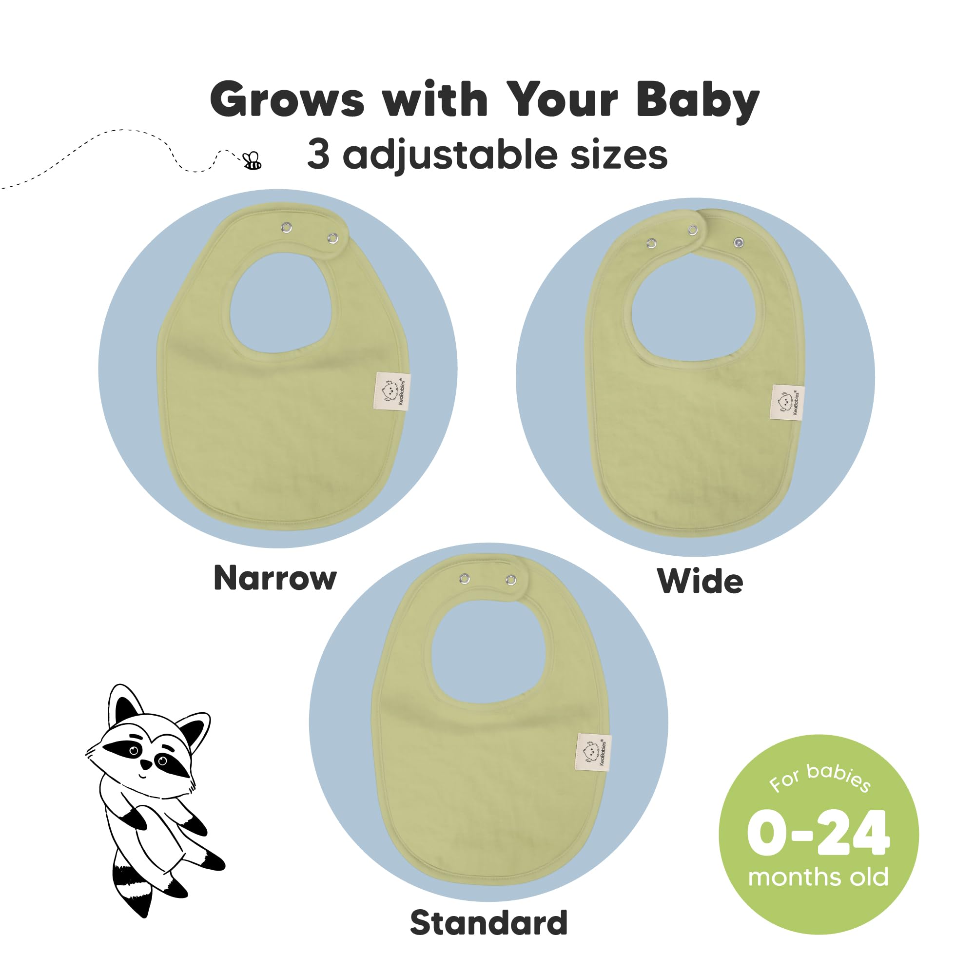3 Adjustable Size With Soft Seams - With 2 sets of easily fasten nickel free snaps, you can adjust the girl and boy bibs according to your baby’s neckline. The soft wrapped organic cotton seams provide extra comfort for your baby and they won’t feel a thing while having the baby cotton bibs on. Suitable for newborn babies up to 24 months.