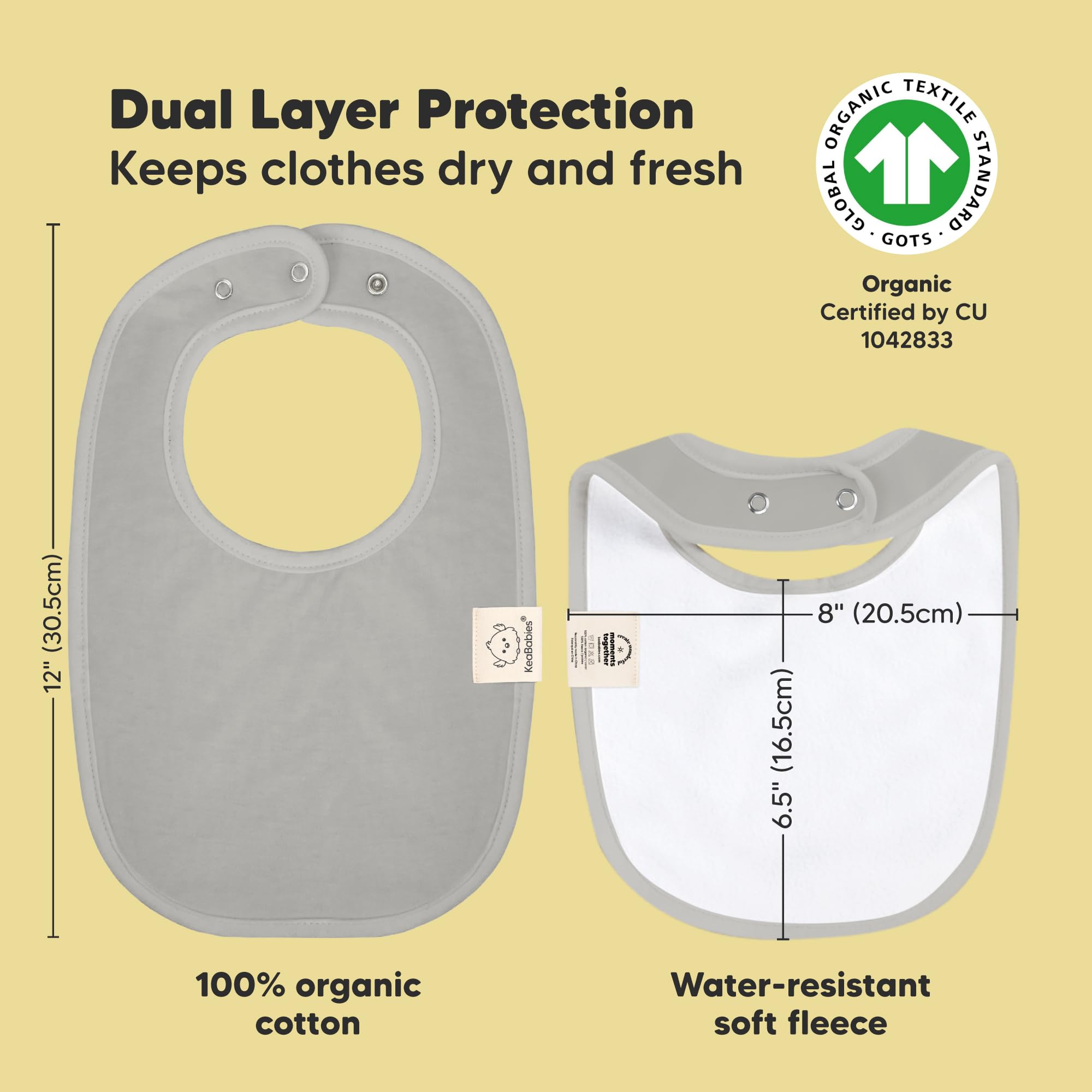 Super Absorbent - Our organic baby boy and girl bibs are made with 100% organic cotton (GOTS-certified) and backed with water resistant fleece for added absorption. This dual layer design helps to keep your baby clean and fresh all day long. Suitable for newborns, infants, toddlers, heavy droolers and teething babies.