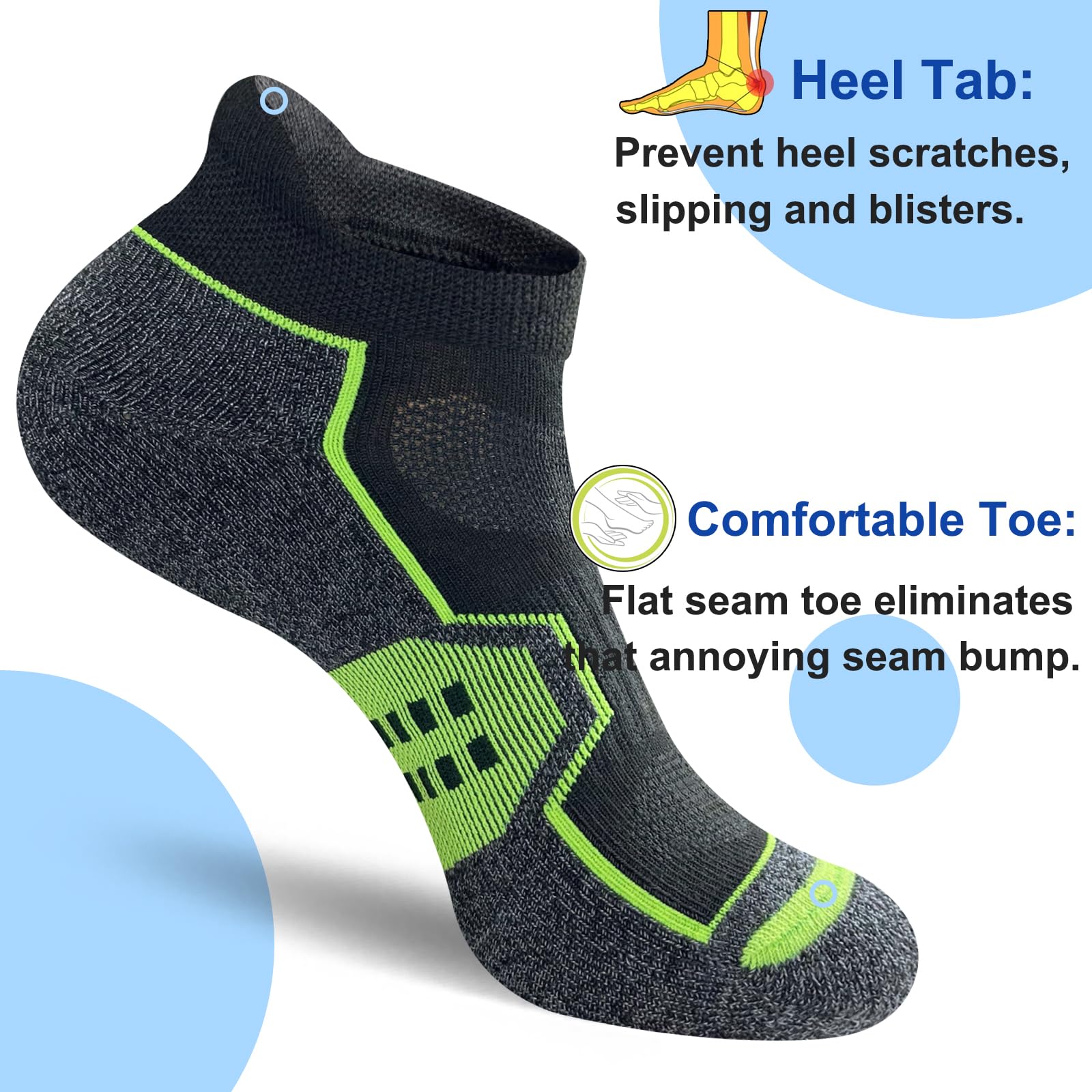 【Heel Tab & Flat Seam Toe】These womens socks with padded tab that prevent socks from slipping off and protect your ankles from blisters. Flat seam toe eliminates that annoying seam bump. Perfect for running, sports, hiking, climbing, cycling and everyday wear.