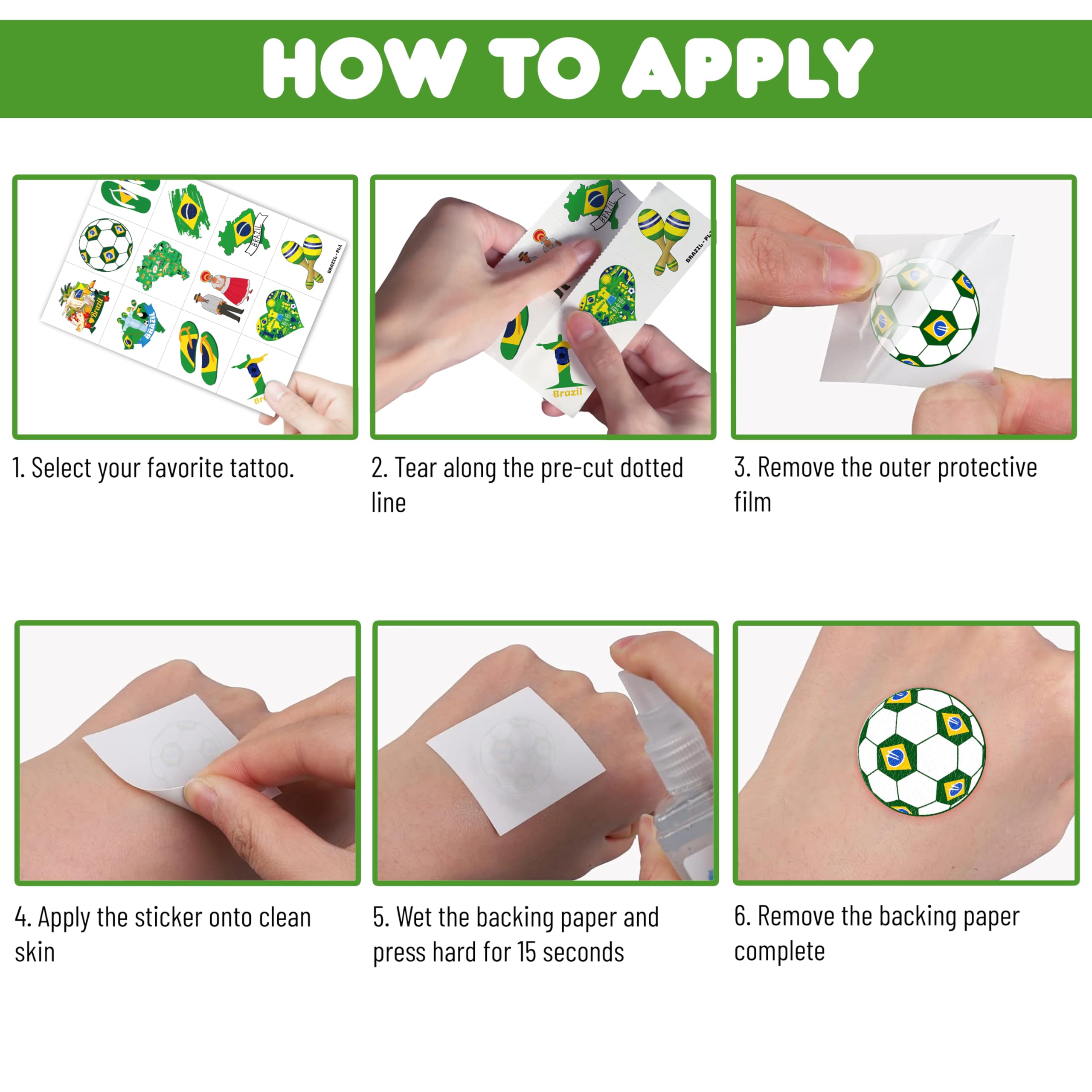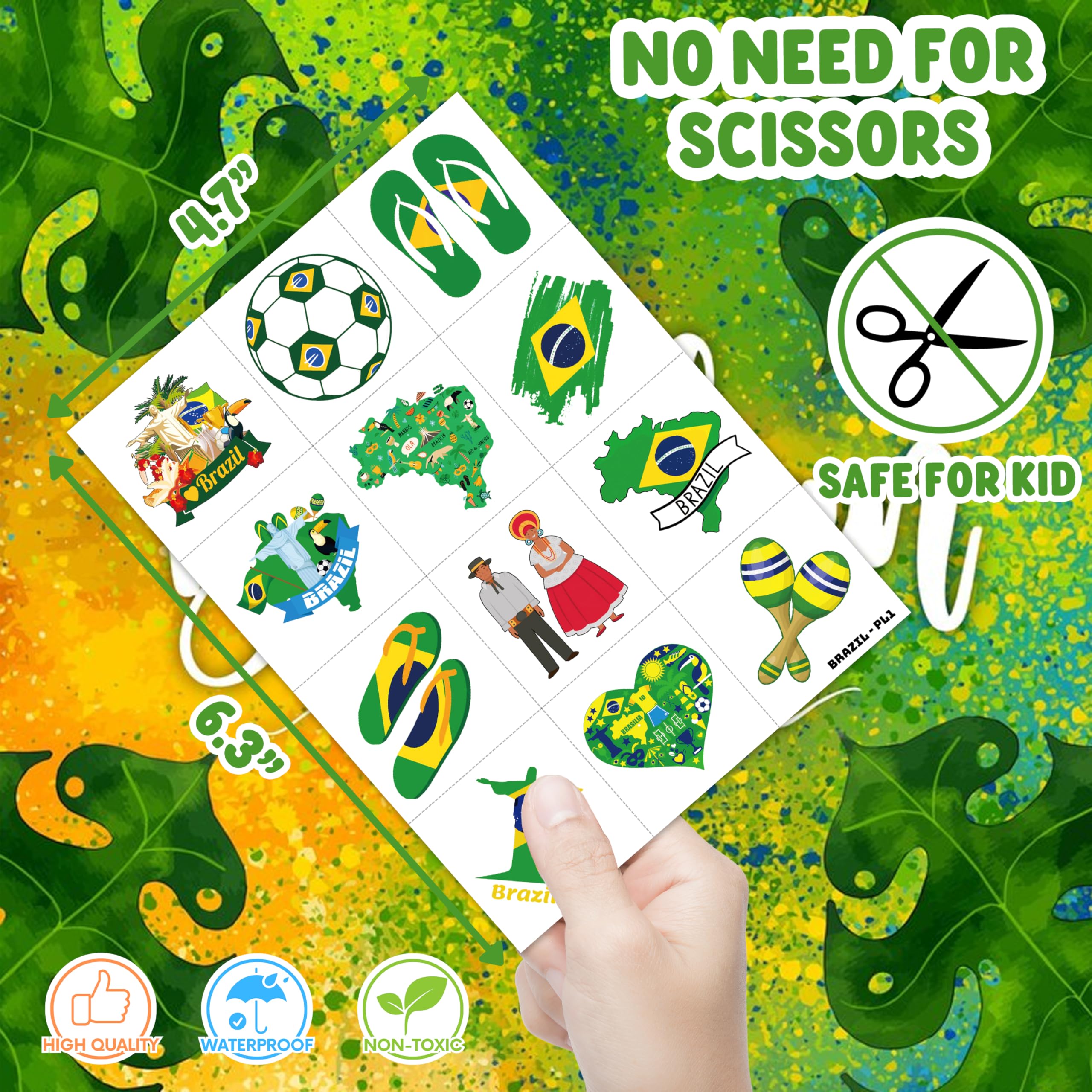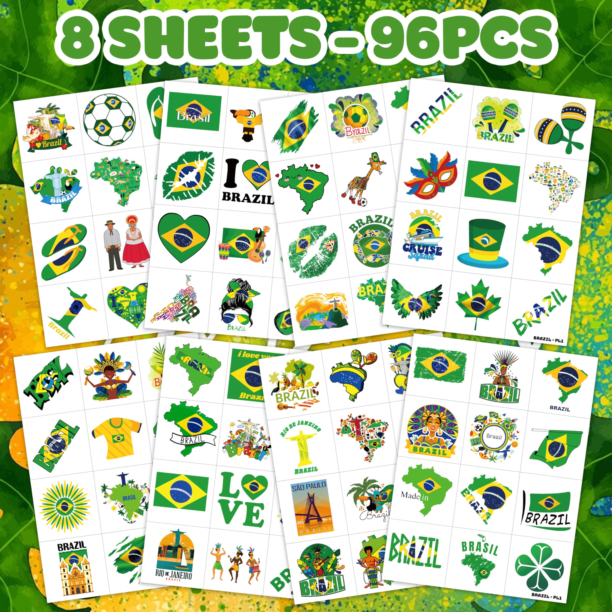 Pattern rich: Brazil Brazilian Flag Funny Soccer Carnival Temporary Tattoos include 8 Sheets 96 PCS, the size of each sheet is 6.3 * 4.7 inches. Easy to share,even if a lot of people's parties, you can have a different tattoo with others.These adorable tattoos will keep you and your little ones – and their friends – occupied for a while.