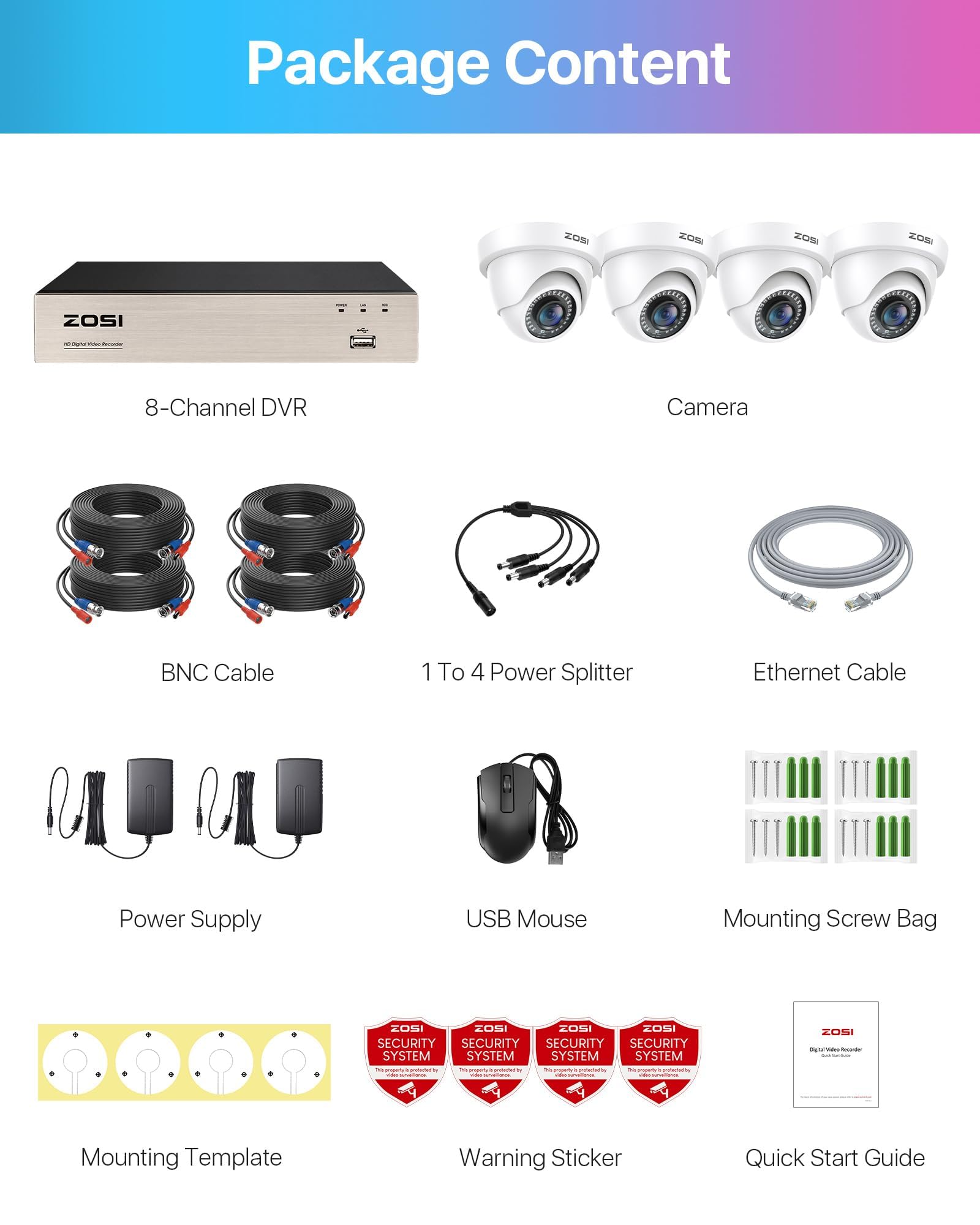 [Expandable camera system] Our expandable camera system offers flexibility with an 8-channel 4-in-1 DVR that supports analog HD-TVI CVI AHD cameras. Easily extend your surveillance coverage by adding up to 4 additional 720P or 1080P bullet or dome cameras to your system.