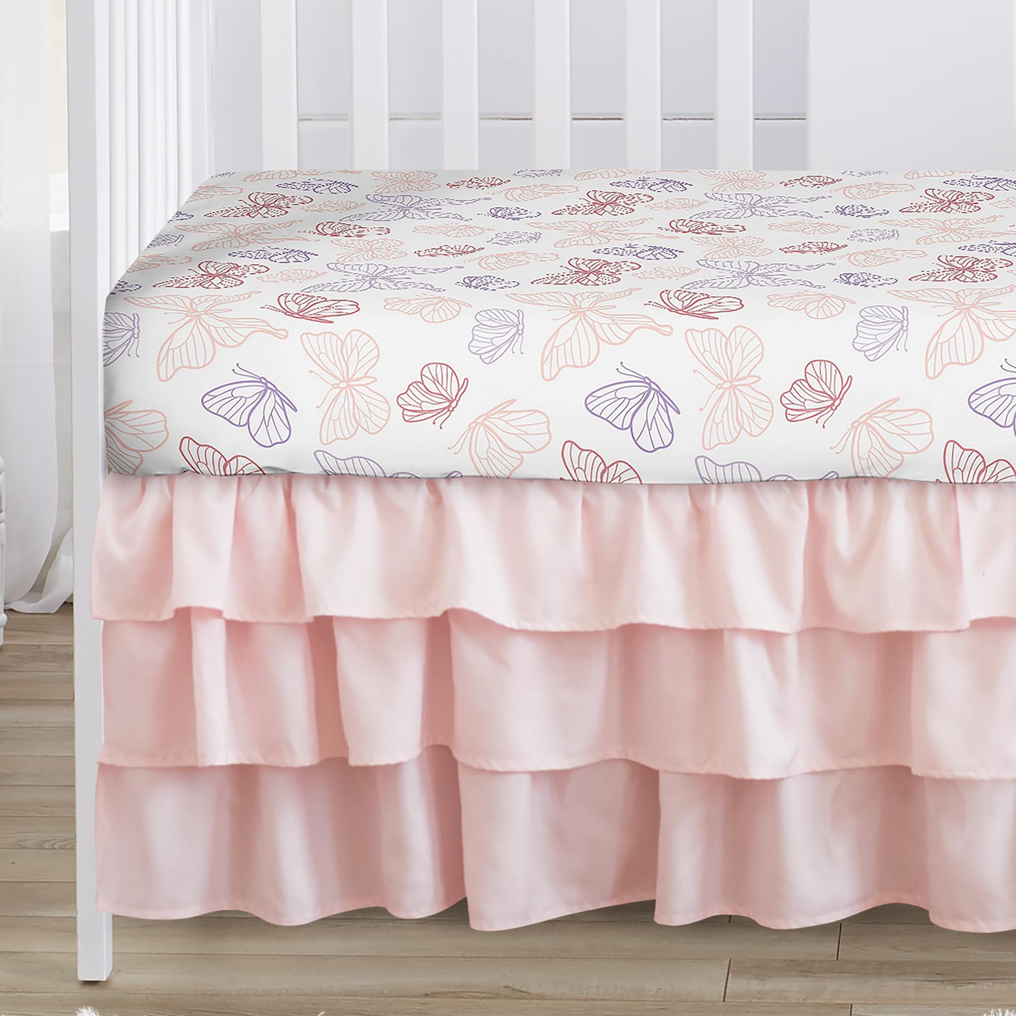Sweet Jojo Designs Shabby Chic Butterfly Girl Baby Crib Bedding Set Infant Nursery Room Blanket Fitted Sheet Skirt Diaper Stacker 4p Blush Pink Lavender Purple White Pastel Lilac Watercolor Pattern