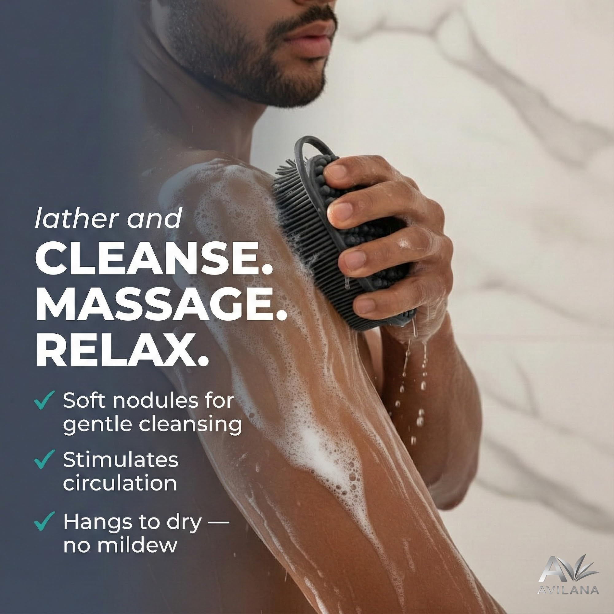 ★ SUITABLE FOR THE WHOLE FAMILY — Gentle enough for sensitive skin yet effective for daily use. Perfect shower tool with easy-grip design that works well for various hand sizes and abilities. From teens to seniors, everyone can enjoy a better shower experience with Avilana silicone body scrubbers.