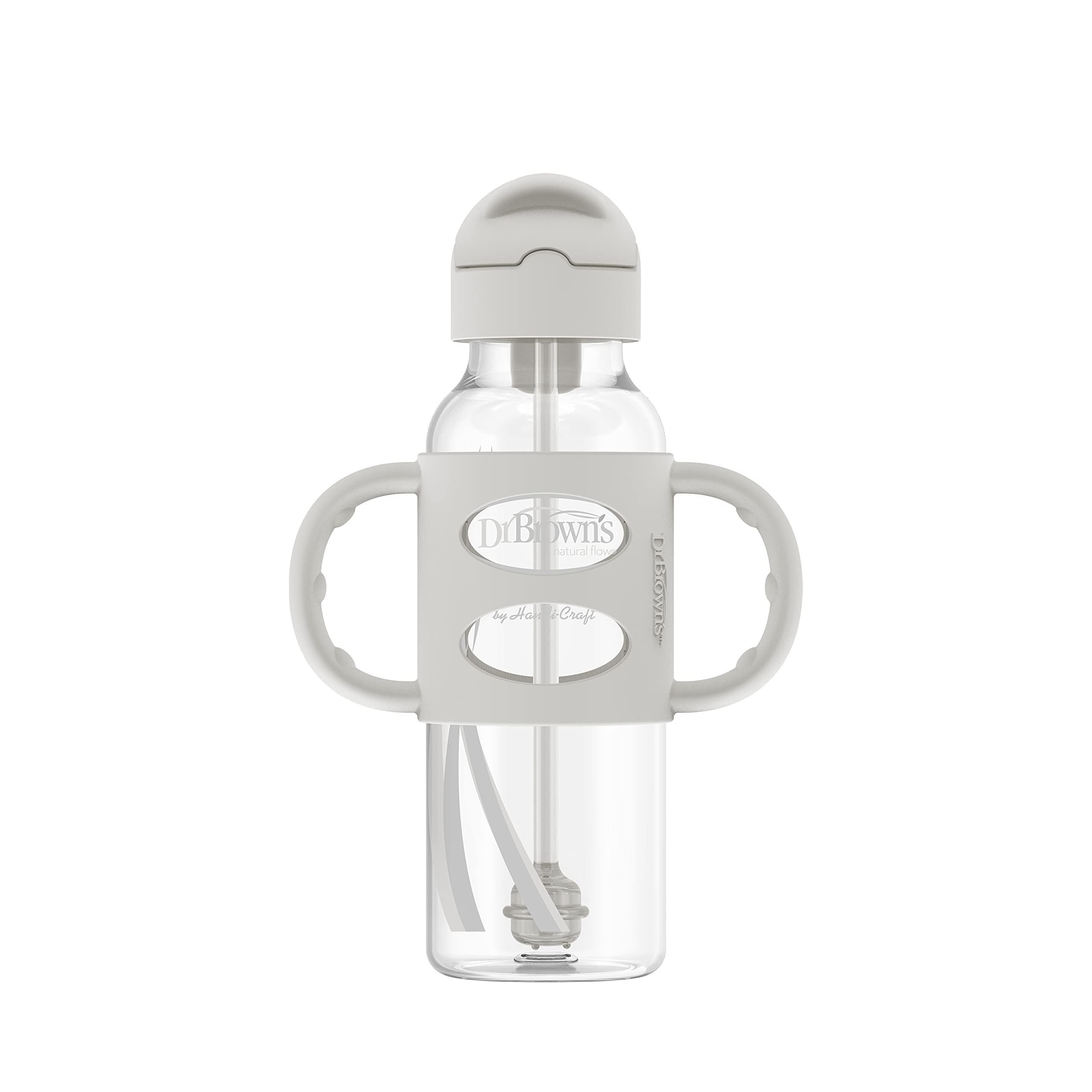 FITS ALL DR. BROWN’S NARROW BOTTLES. Both the sippy straw lid and silicone handles fit all Dr. Brown’s Options+ 8 oz/250 mL baby bottles and sippy spout bottles.
