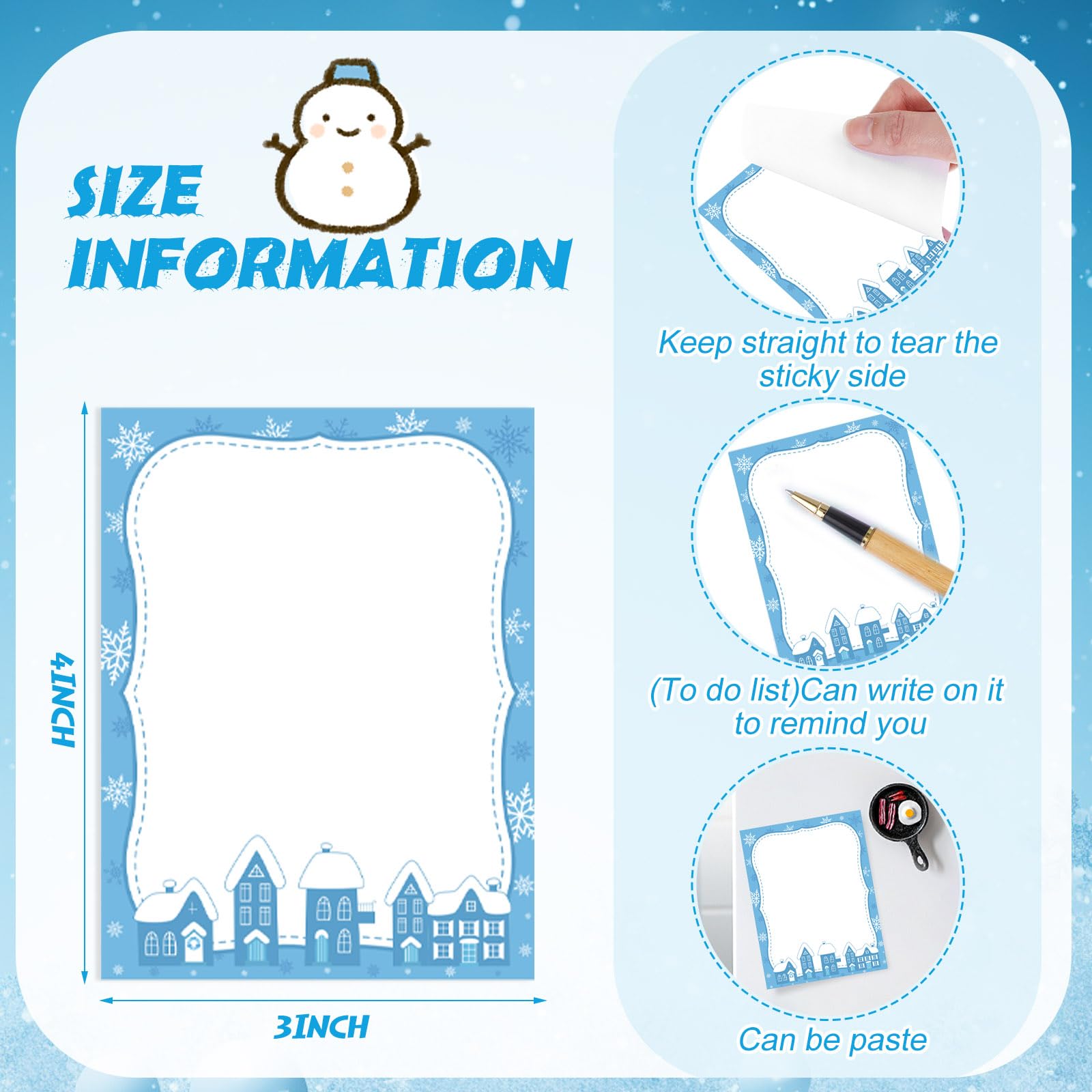 Reliable Material: these winter self adhesive notes are made of paper material, which is smooth to write, not easy to tear and break, with bright printing colors, not easy to fade, durable, nice adhesion, and not easy to leave residue when removing the sticky notes