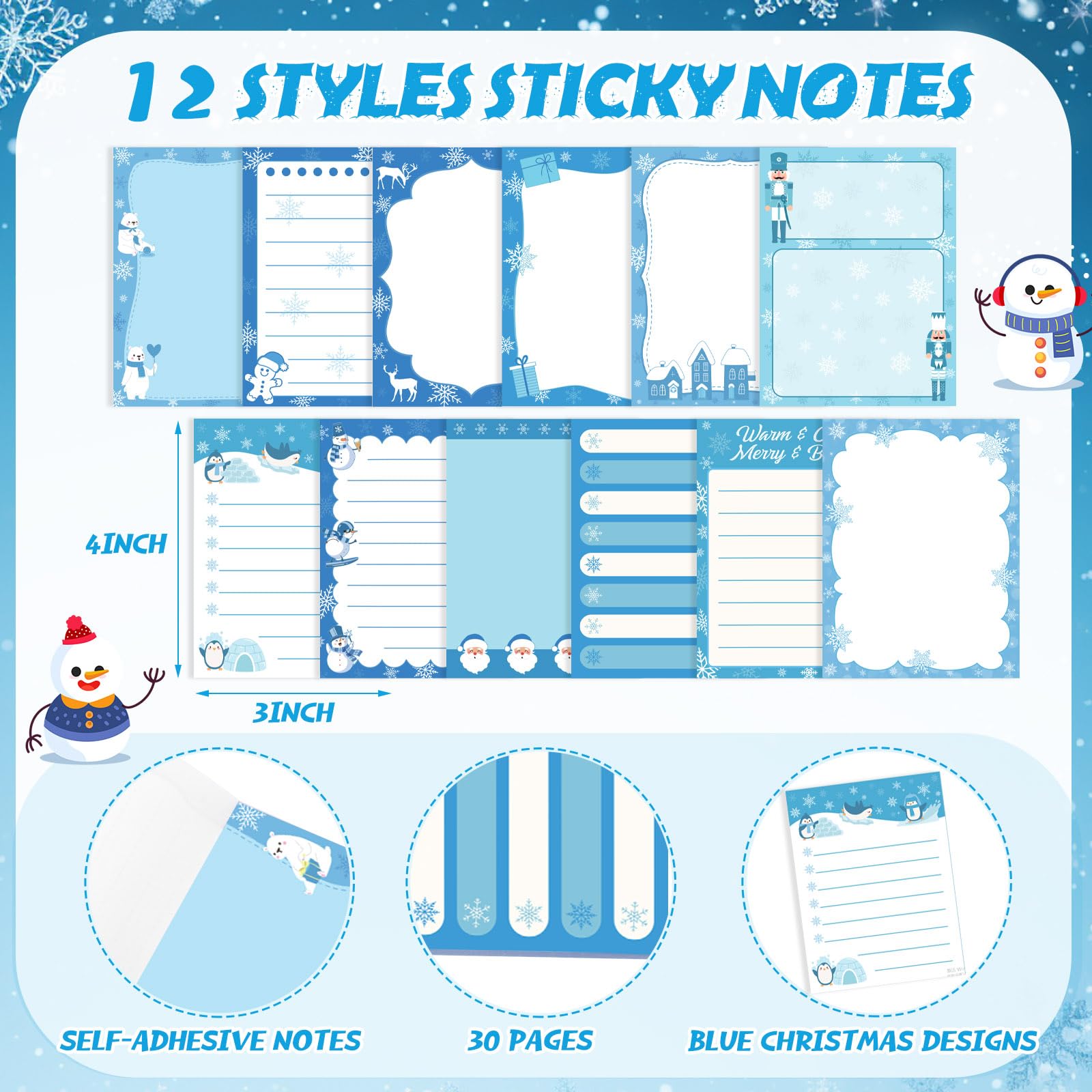 Sufficient Quantity: you will receive 12 pieces of blue Christmas themed sticky notes, packaged with 30 pages each, for a total of 360 sheets; The dimensions are a handy 3x4 inches /7.6x10 cm, enough quantity and rich design to meet your various needs and replacements