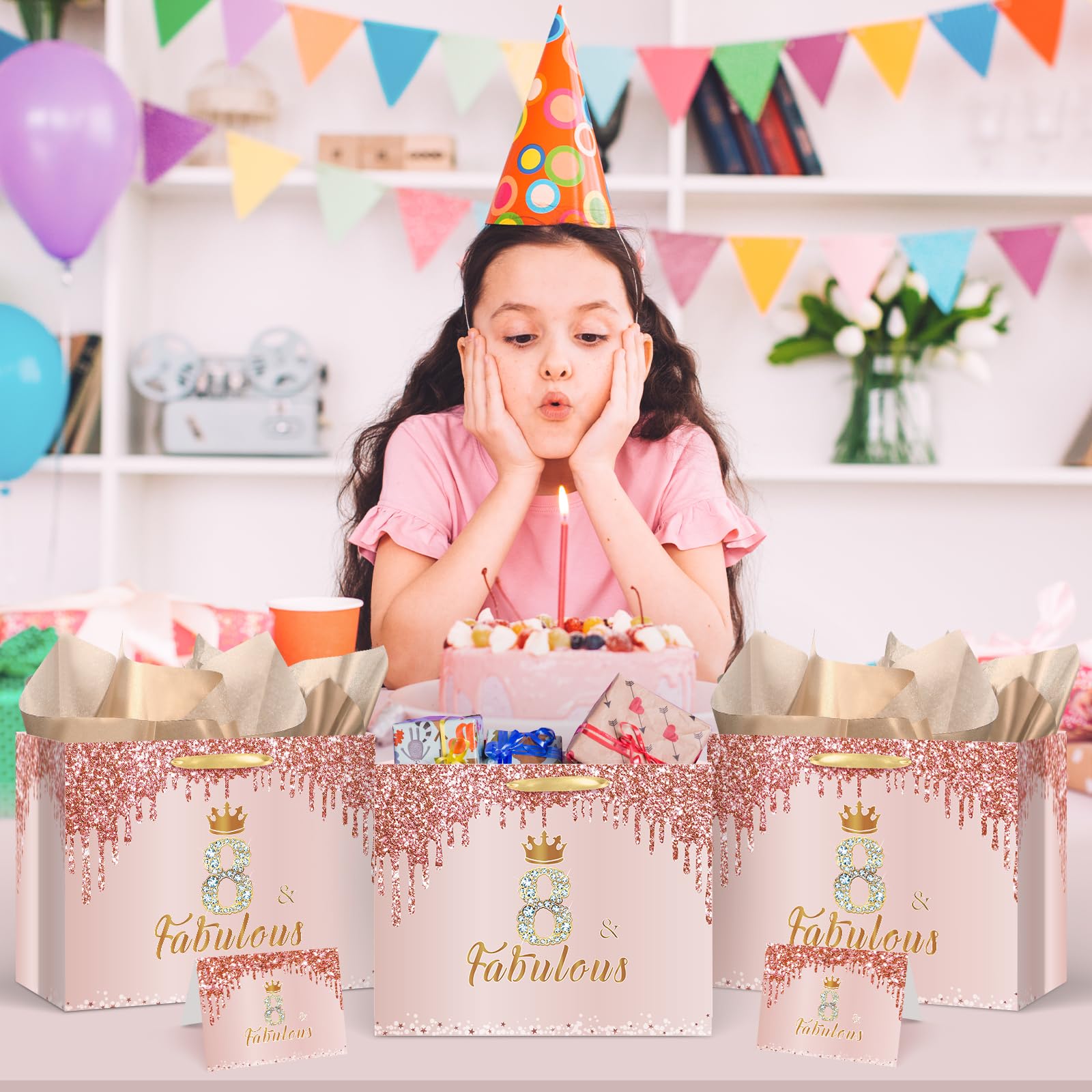 đăWide ApplicationăThe rose gold happy sweet 8th birthday gift bag for girls is suitable for 8th birthday gifts and 8th anniversaries gifts. Great 8th birthday gift bag for girls, girlfriend, friends, daughter, family etc. Moreover, this large 8th birthday gift bag with 8th birthday greeting card and wrapping tissue paper can also be used as Christmas gifts or a birthday party decoration, which can make your party more impressive.