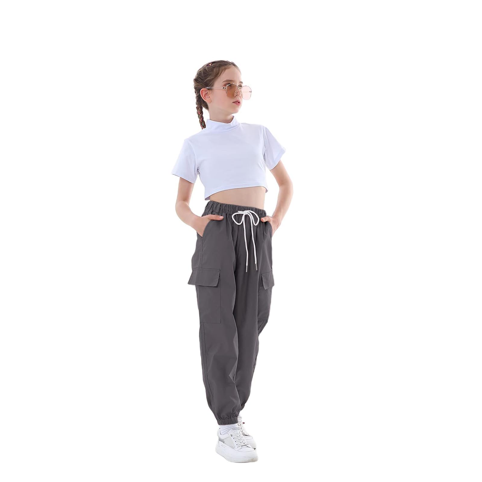 Sports Wear: Girls relaxed-fit cargo pants are perfect for kids outdoor activities, sports, running, jogging, hiking, skateboard.