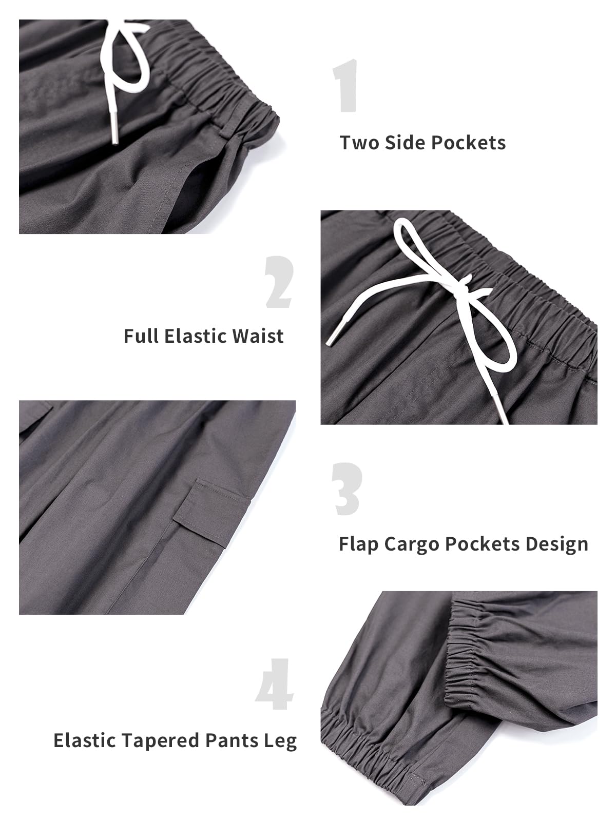 Material: Super lightweight fabric kids girls cargo pants, breathable, loose fit makes your kids comfortable and roomy-easy to put on.