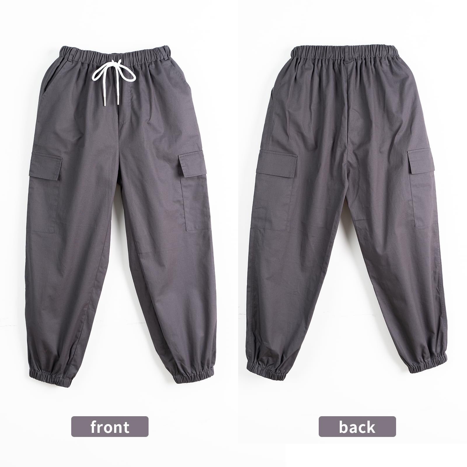 Design: Baggy pants for girls with high elastic waistband, banded ankle cuffs, multi pockets functional for carrying items during day trips on foot.