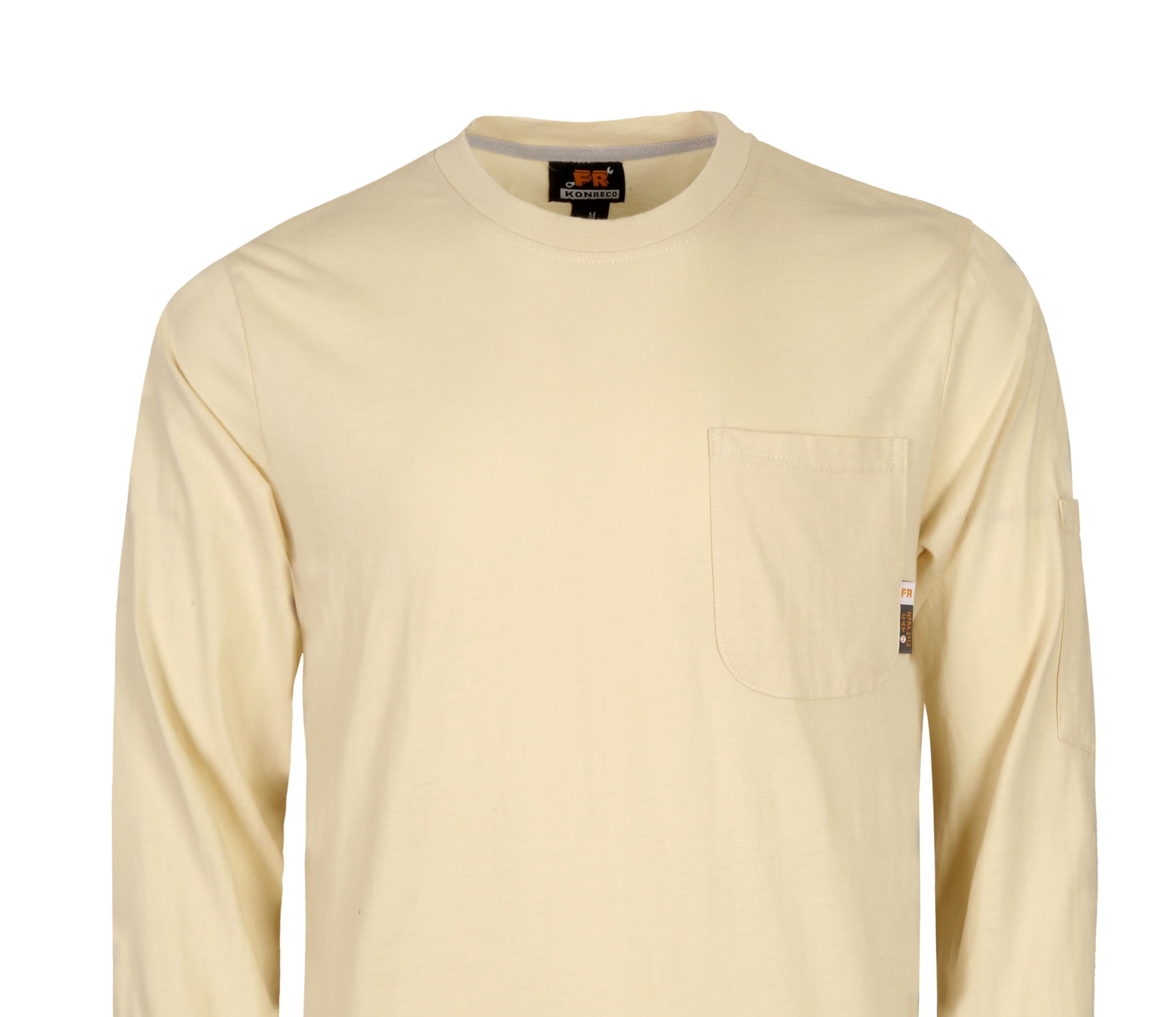 [Applied Design]Preshrunk & Pre-washed,Machine Washable.Classic crew neck style with one chest pocket and one sleeve pocket for your convenient storage of small stuffs.Rib-Kint collar and cuffs.Our FR shirt provides you a more comfortable dressing experience.