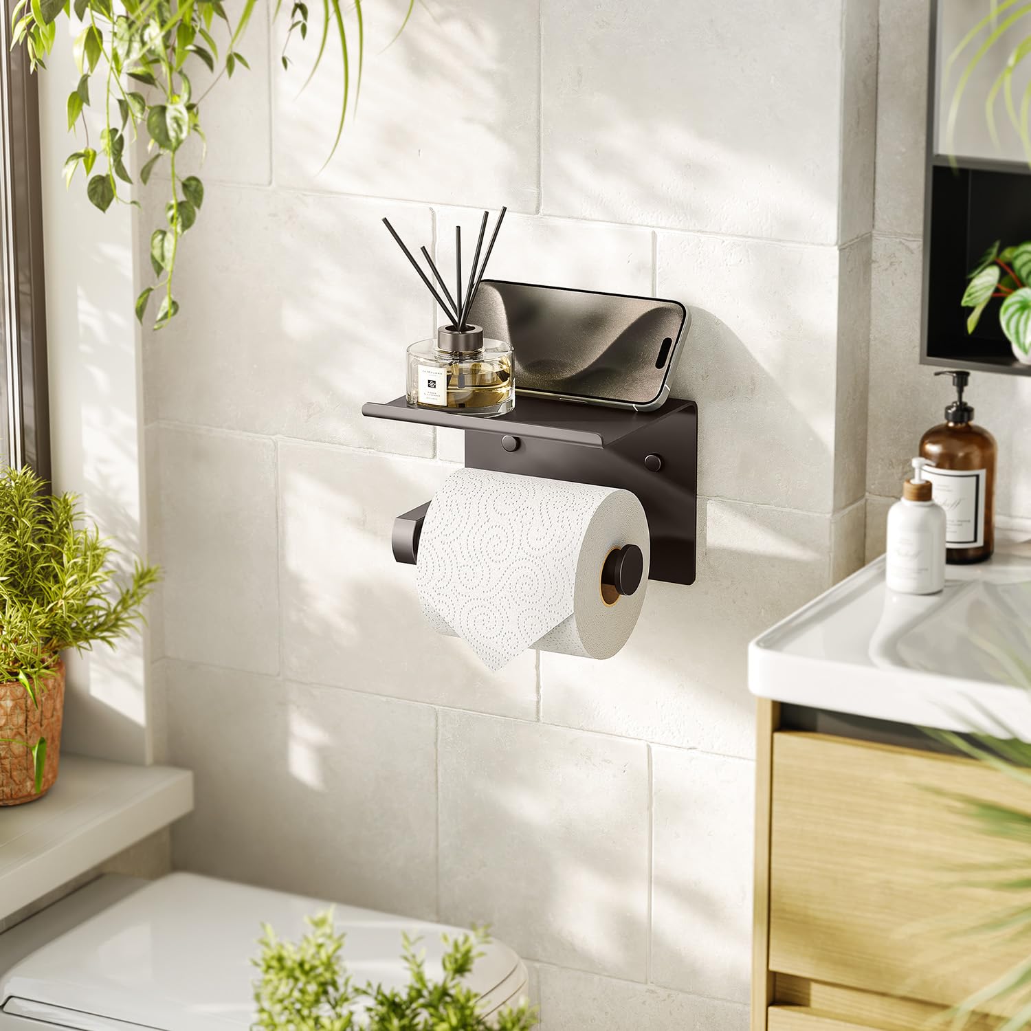 Modern & Stylish Design: Finished in oil-rubbed bronze, this waterproof, rust-proof, and corrosion-resistant toilet paper holder complements a variety of home decor styles. It adds a modern touch to your home and simplifies bathroom and kitchen organization. The standard process creates a delicate, beautiful, and long-lasting finish