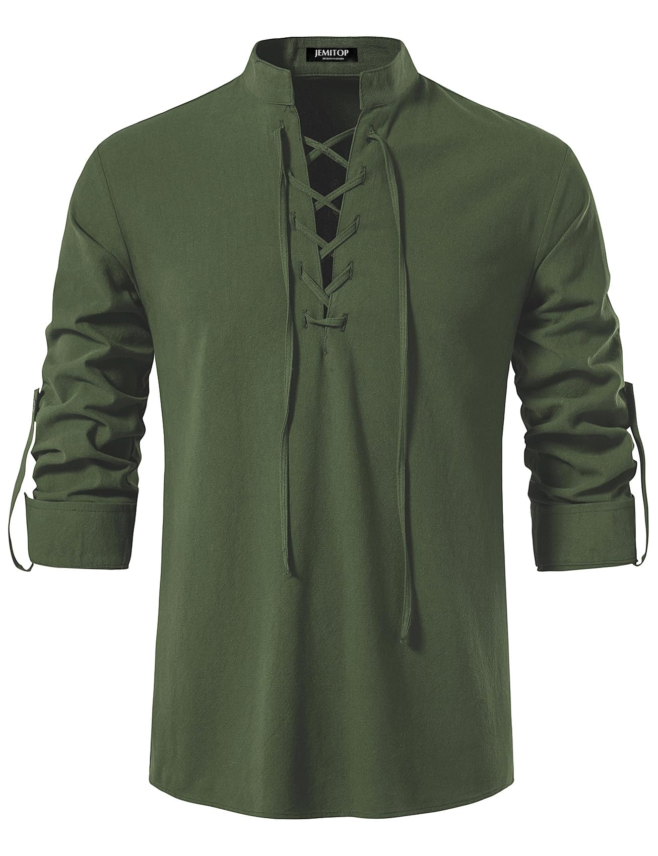 Design Concept: Cosplay costume for renaissance,pirate,viking,medieval,halloween / Retro drawstring shirt / Regular fit / Mandarin collar / Long sleeve / Rolled sleeve