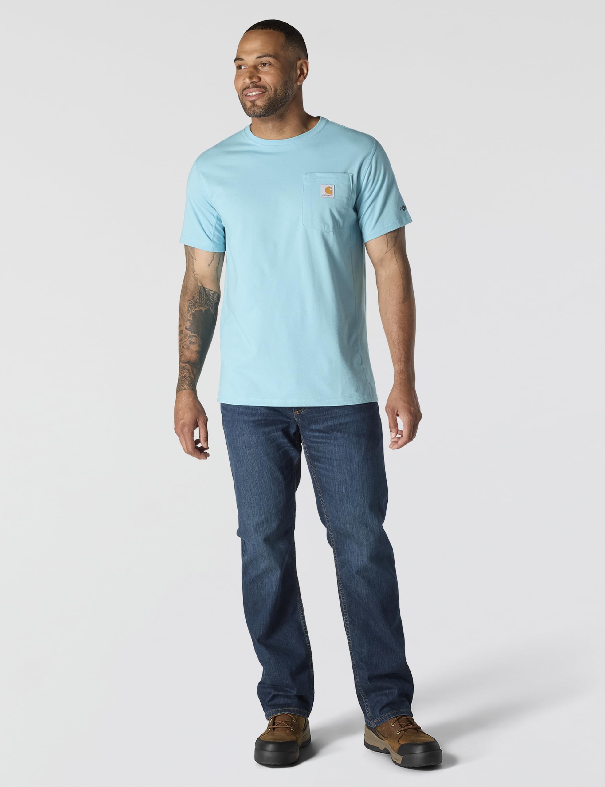 Description On the job or under the sun, this men's Carhartt t-shirt keeps you cool and comfortable. UPF-rated jersey fights off sweat and dries fast so you can stay focused on the task at hand. Ventilated panels keep the air circulating, and a drop-tail hem provides extra coverage.