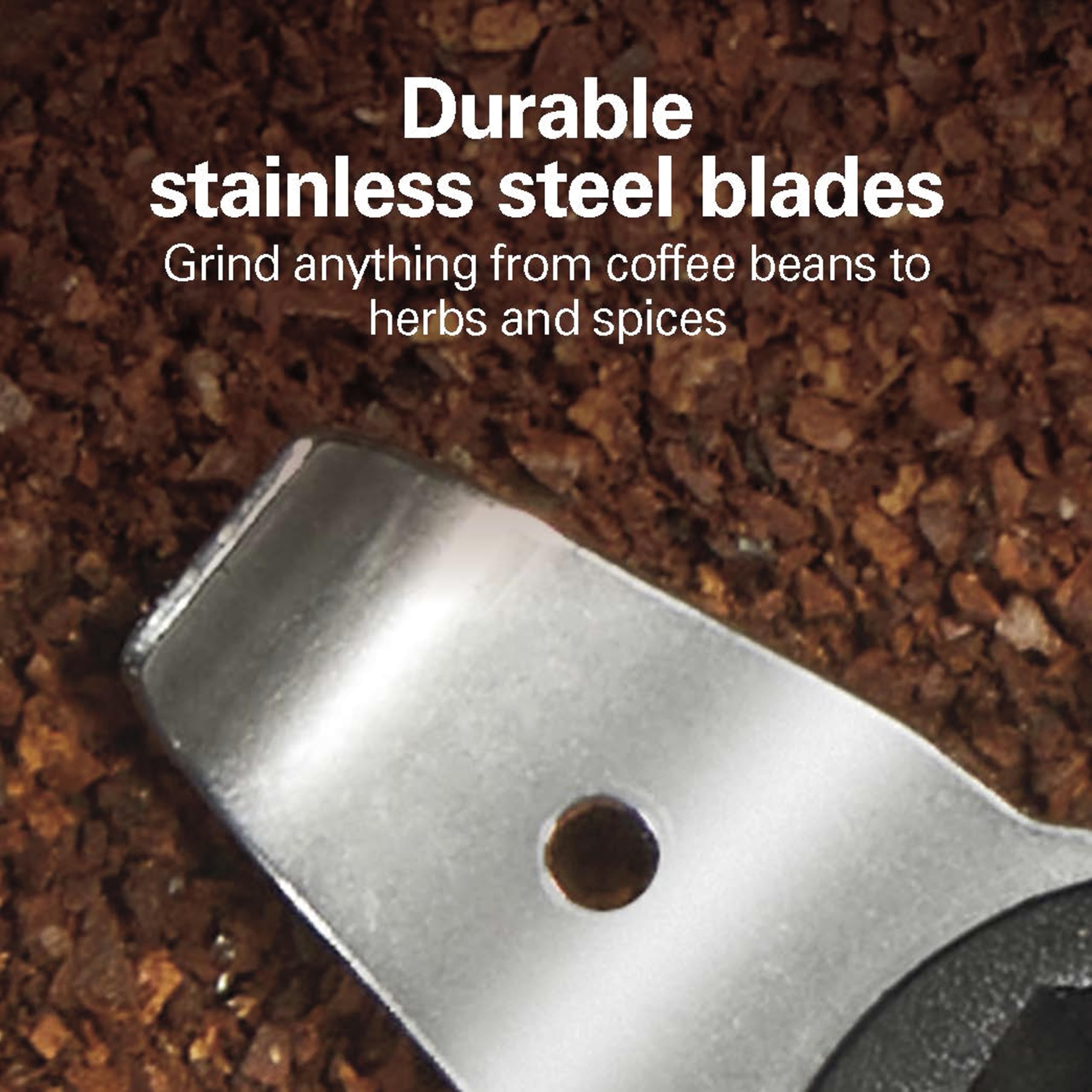 DURABLE STAINLESS STEEL BLADES: With the durable stainless steel blades, this Hamilton Beach coffee grinder makes easy work of grinding everything from coffee beans to herbs and spices.