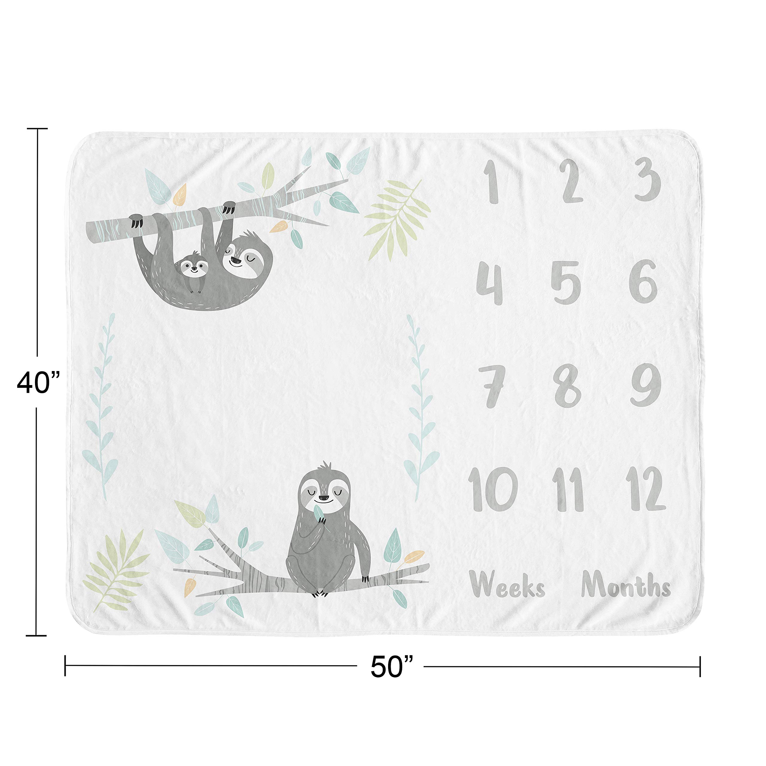 100% plush minky fleece featuring aqua, grey and green rainforest jungle sloths