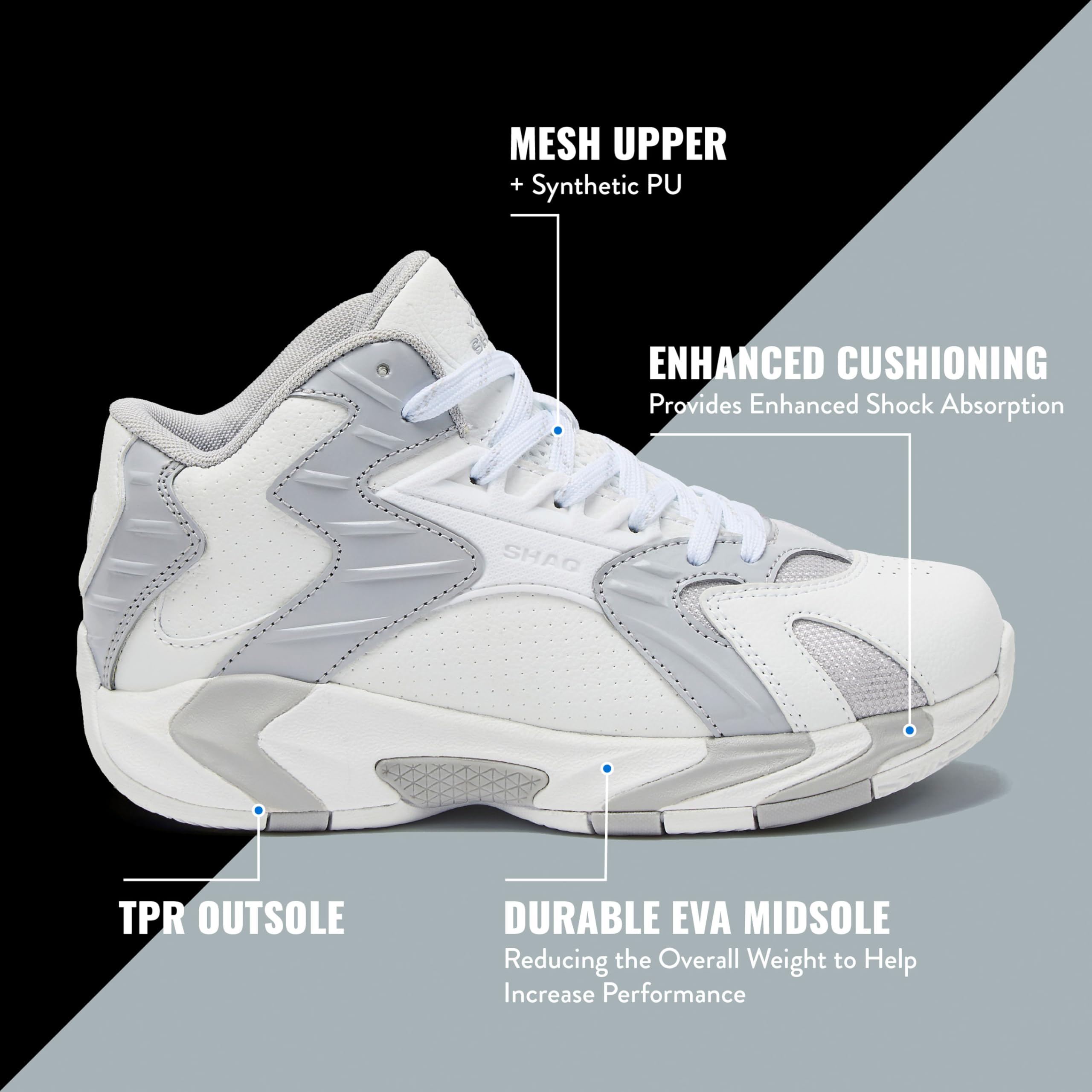 SHAQ BASKETBALL GIRLS AND BOYS SNEAKERS - Dominate the game in the all new SHAQ Devastator 2.5 youth and kids basketball shoes. Built for speed and agility on the indoor or outdoor court.