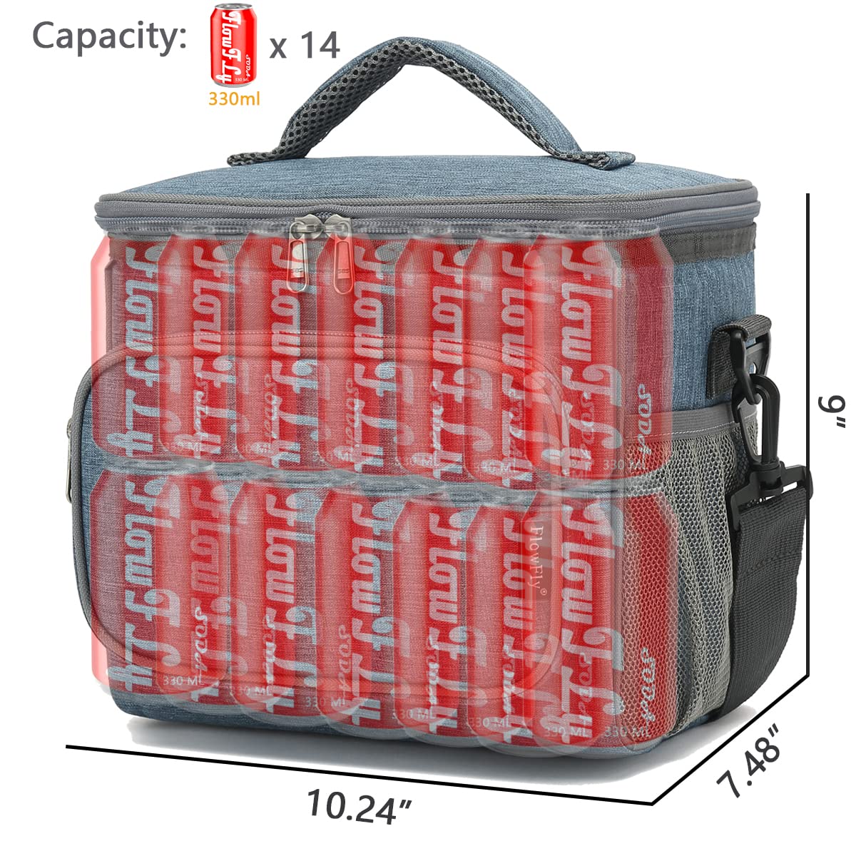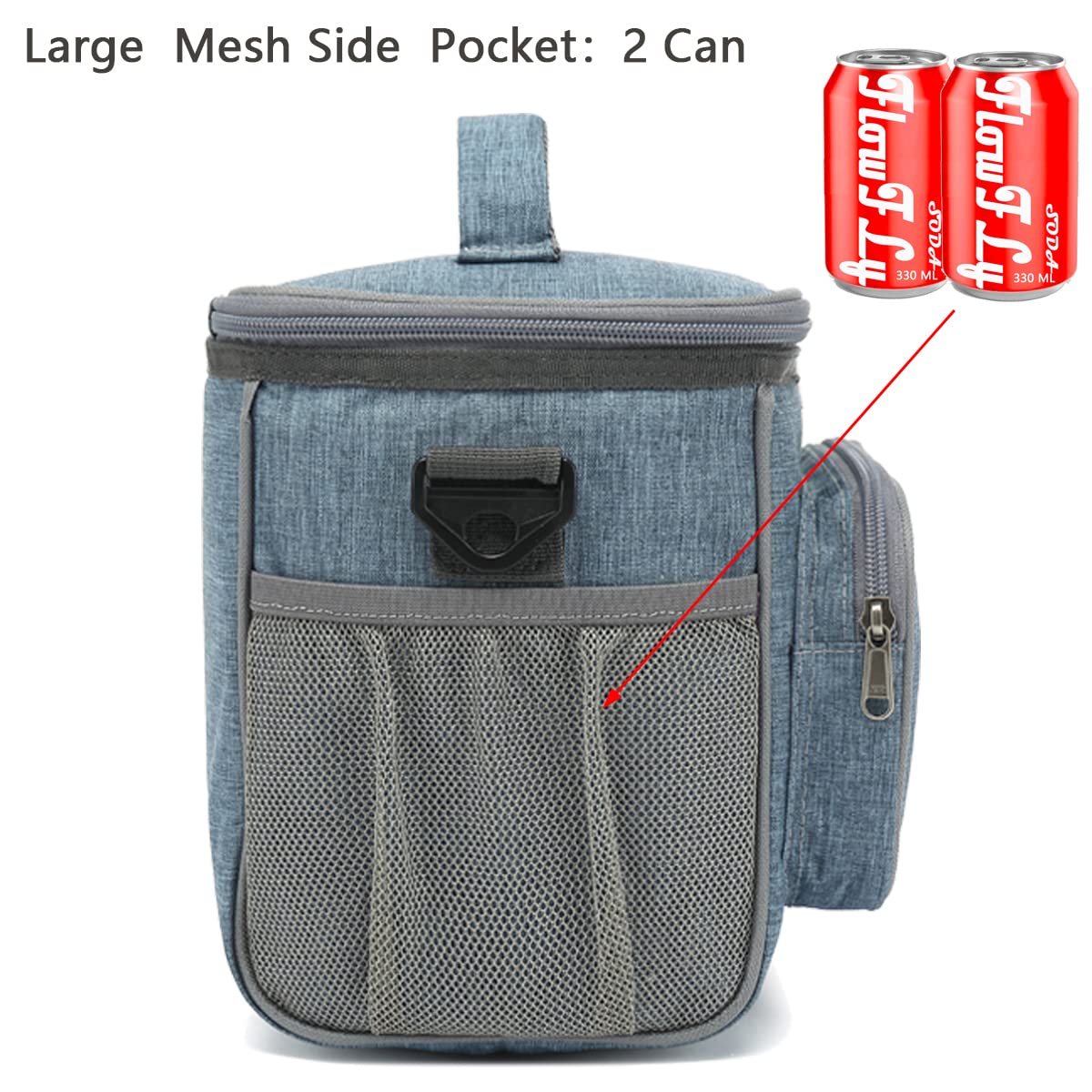 ✿ Large Size:the dimension of the container is:10.24”L×7.48”W×9.06”H,but not too bulky , it could give roomy storage space you need to hold your favotite meals,delies and lunch treats.You could fill the roomy compartments or pockets with lunch boxes, food containers, condiments,fruit salad bowls,utensils,napkins,can opener,wallet,keys and other essentials. Keep your water bottles or energy drinks inside the mesh pocket and quench your thirst of the spot.